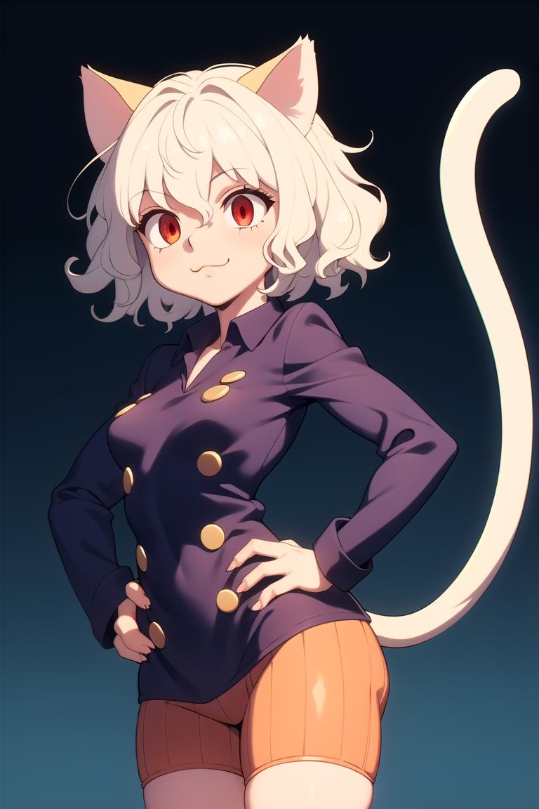 I did a test before using a dataset only with arts that matched her anime visual, since people drew her with very inconsistent colors. Although the extra incosistent images gave a better result. Because of that, you can prompt some more characteristics such: white/grey/silver hair, red eyes, cat tail, curly hair, etc. Check the samples to see what I used.