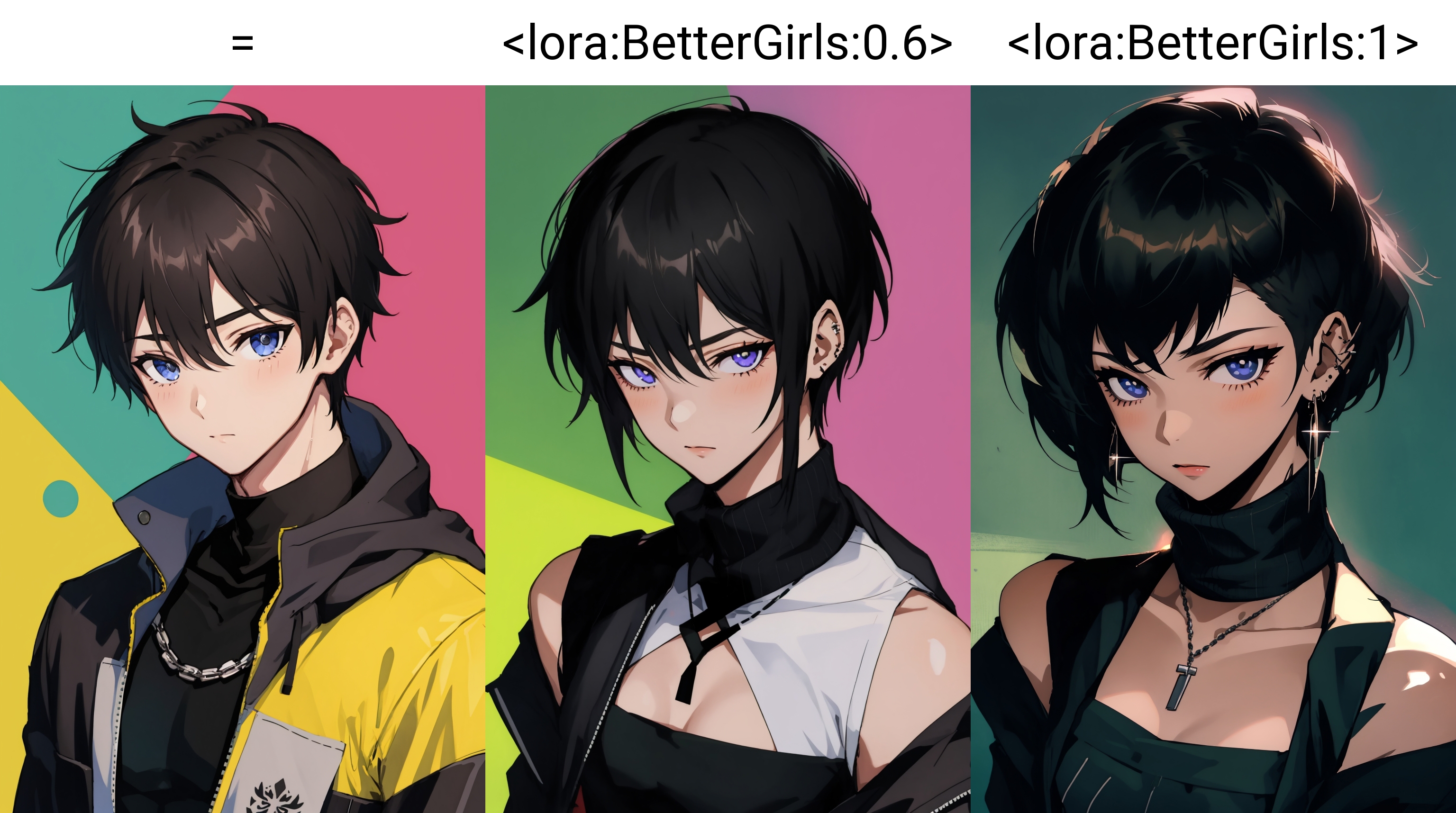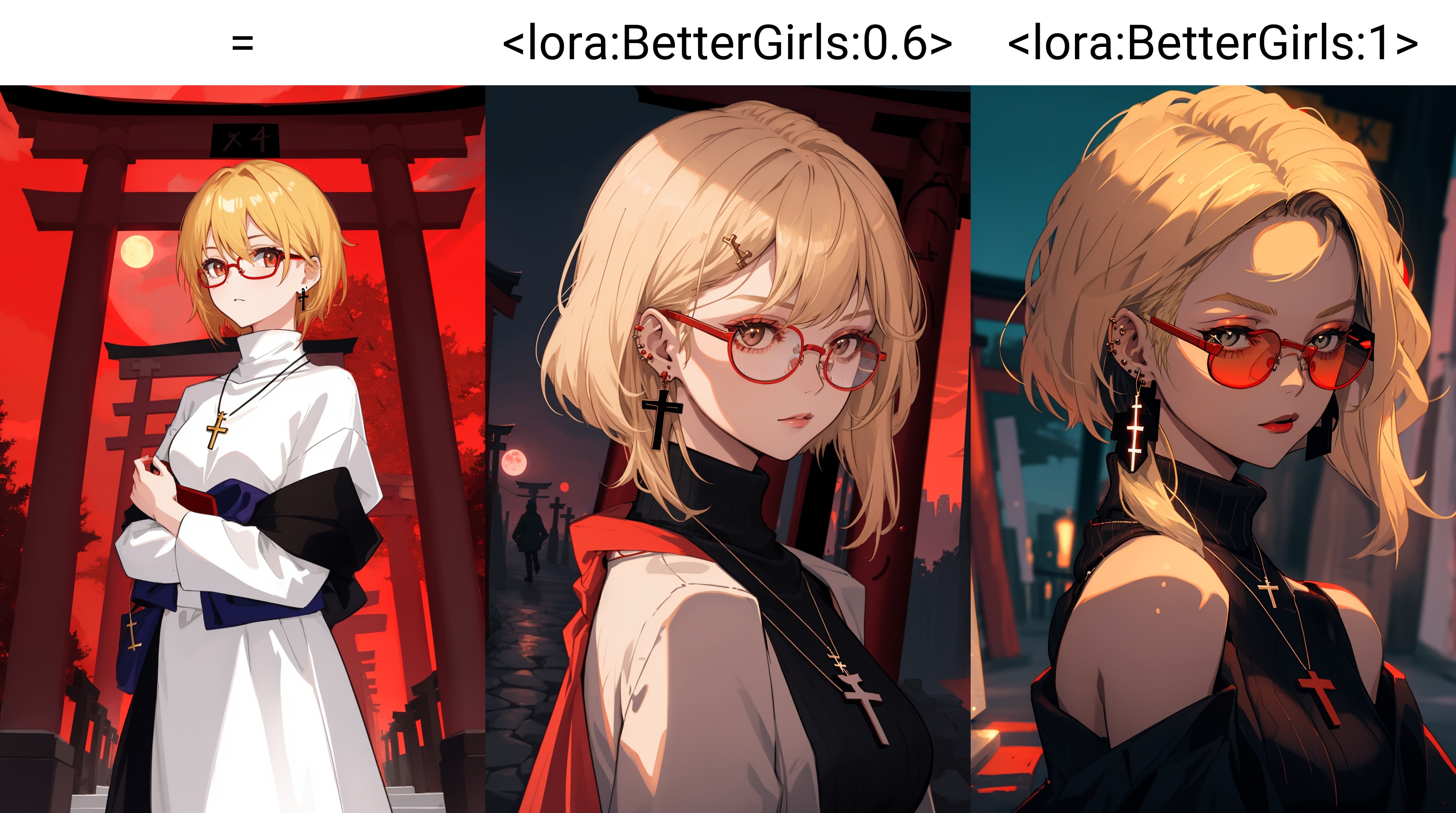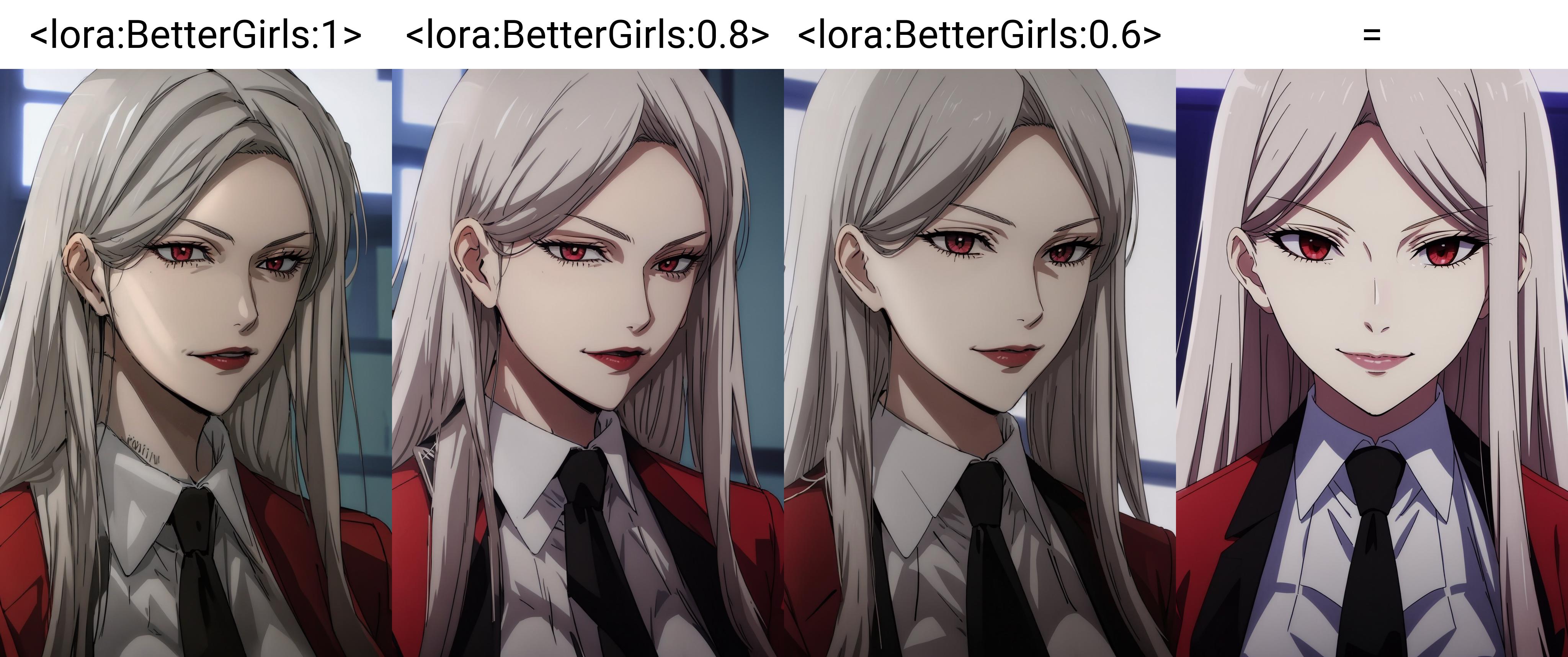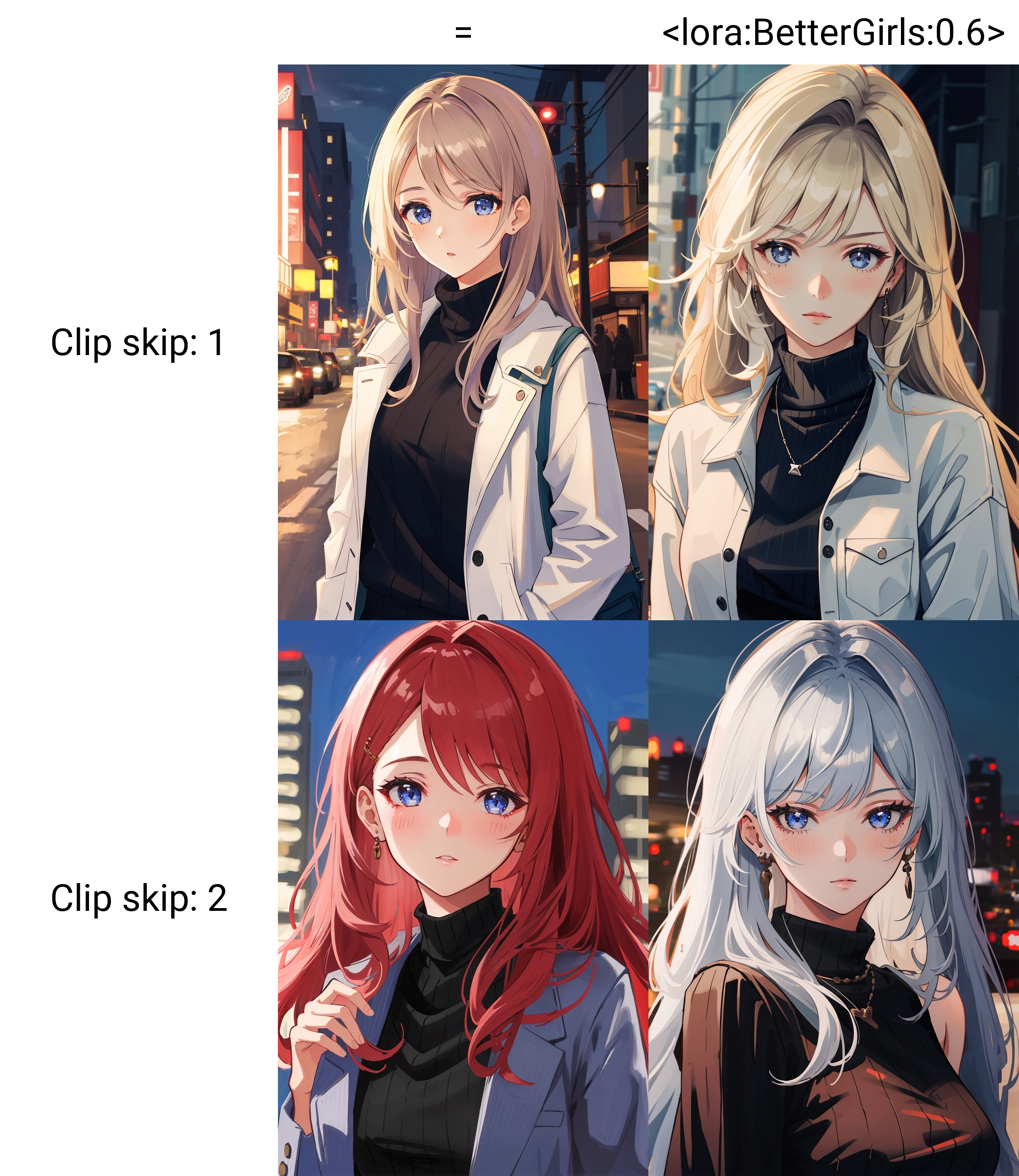 loRA makes your art more detailed by detailing hair and faces, as well as adding detail to things like earrings and necklaces.Also, loRA has a pretty big effect on background, lights and exposure