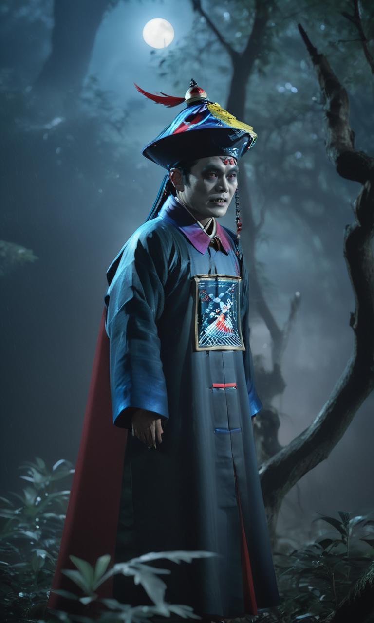nvjiang,1girl, huangfu, huangfu, paper (Female zombie, costume slightly different from male zombie)