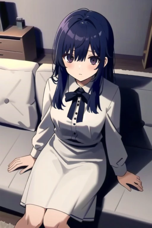 Trigger Words: creepy mita, long hair, purplish blue hair, black eyes