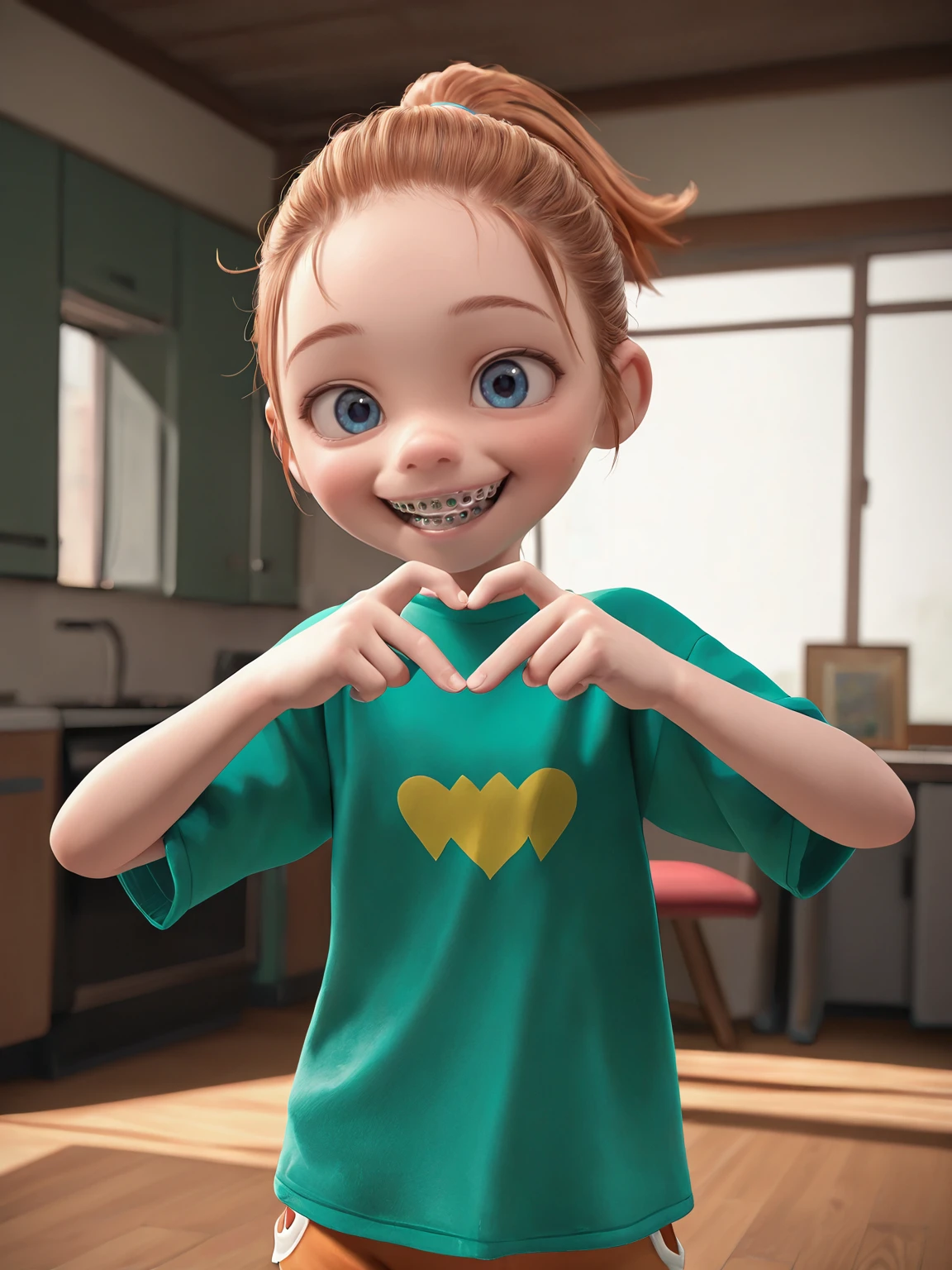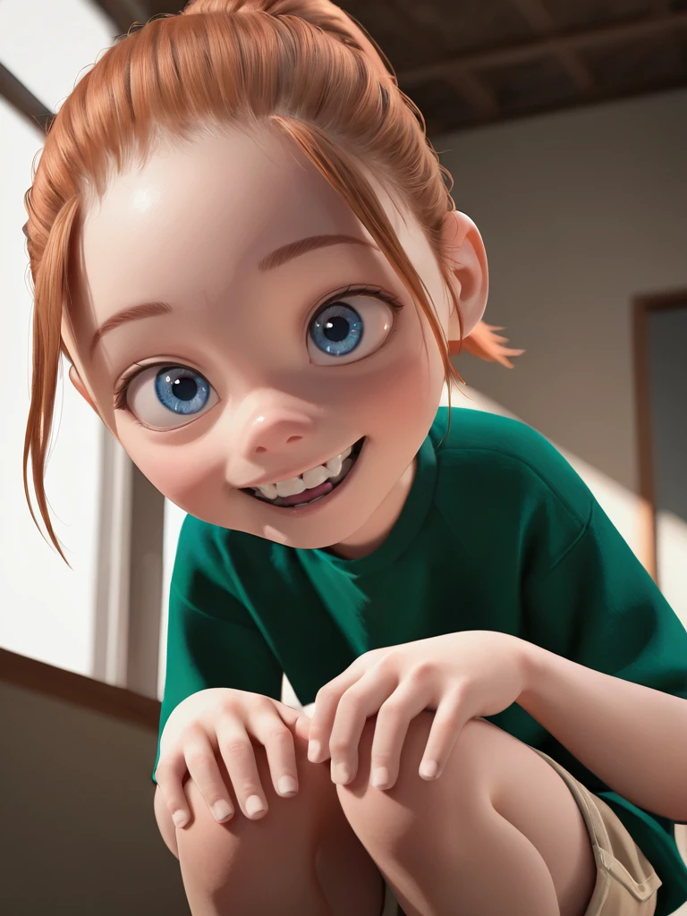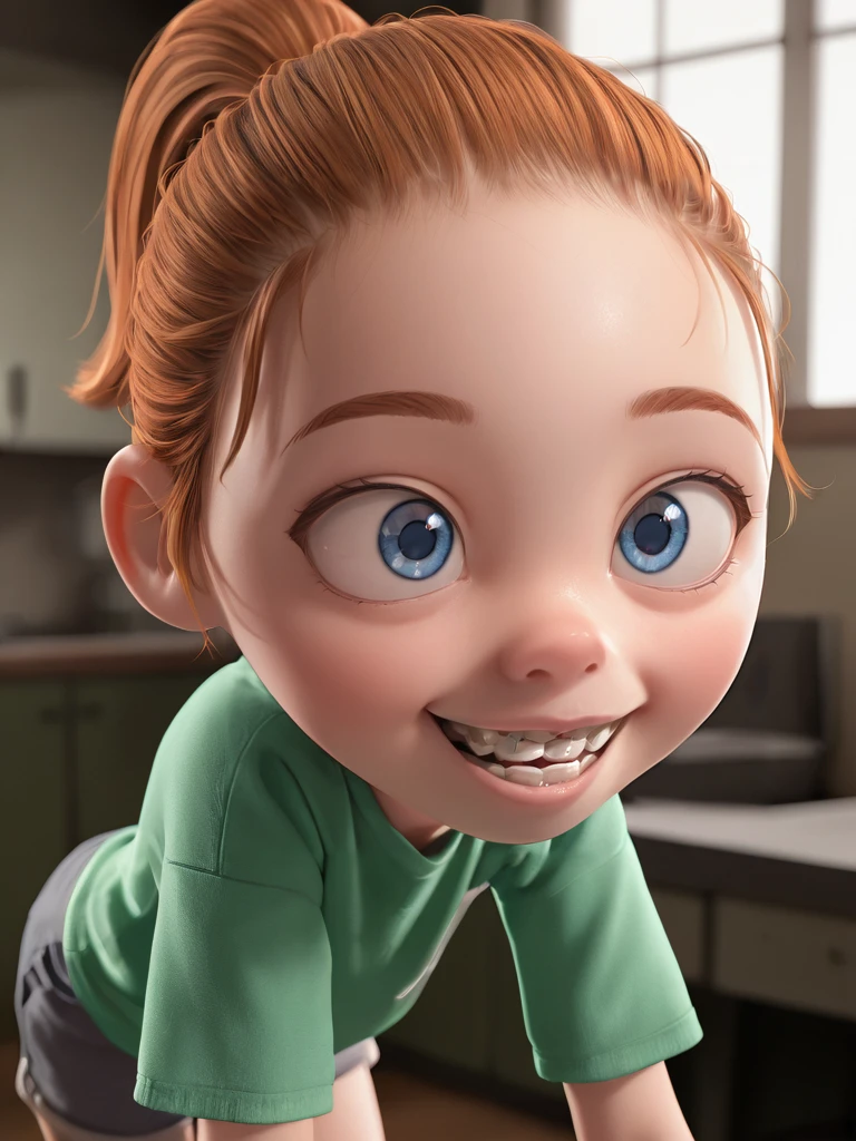 Kari, 1girl, brown hair, ponytail, forehead, blue eyes