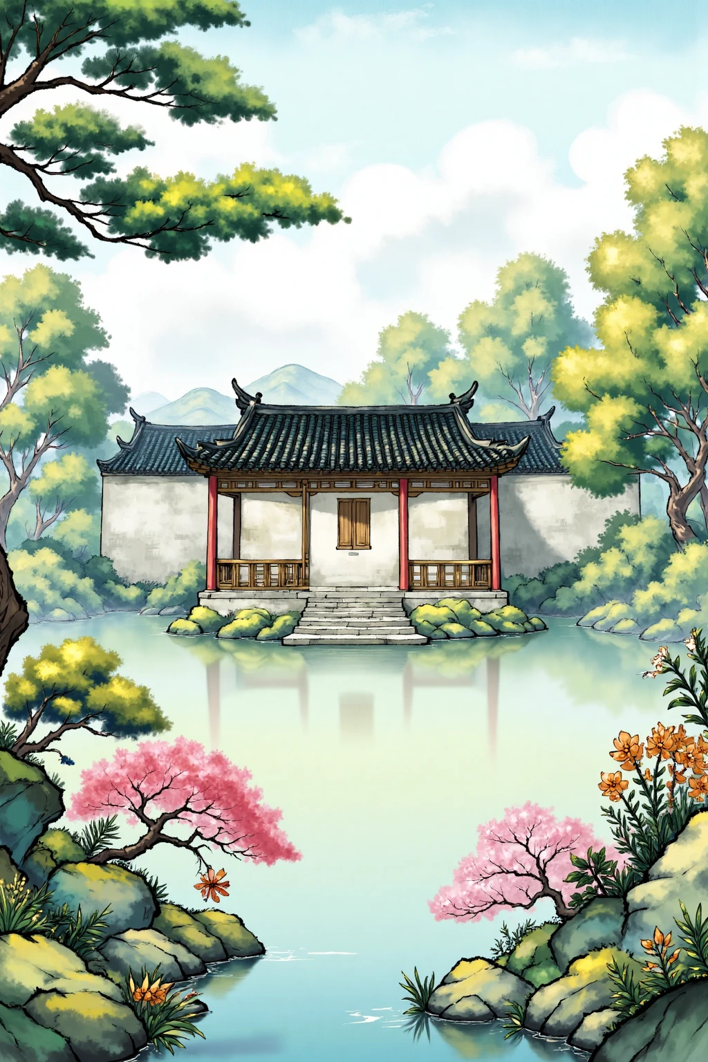 A Chinese ink painting style