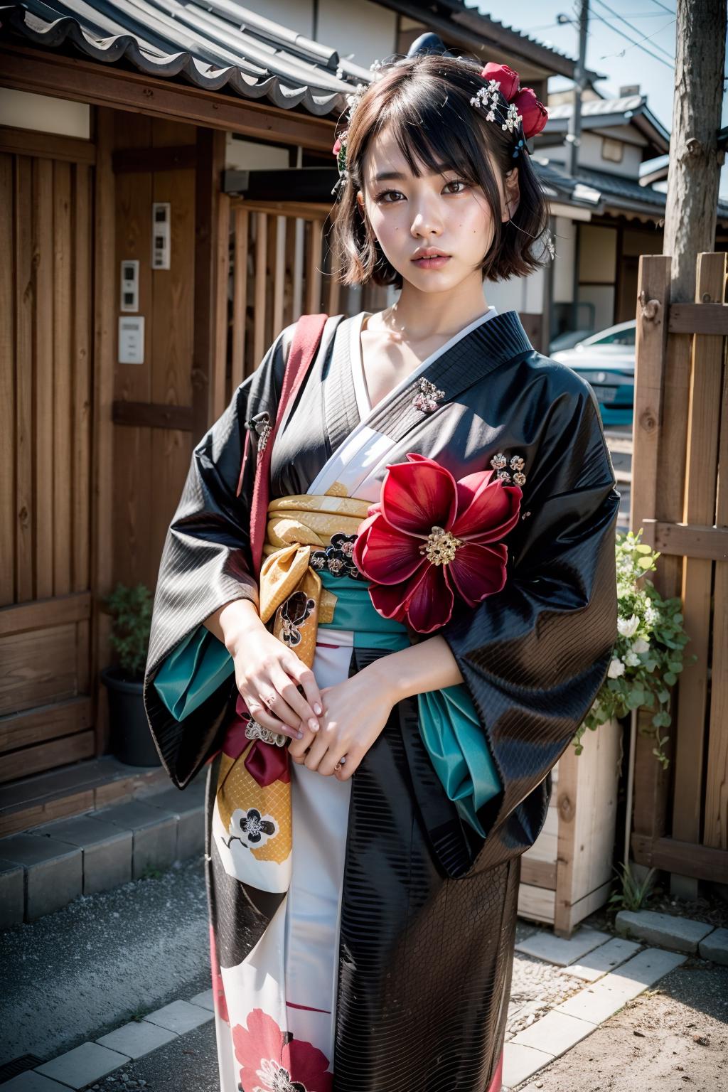 Normal: japanese clothes, kimono, sash, obi, red kimono, black kimono,