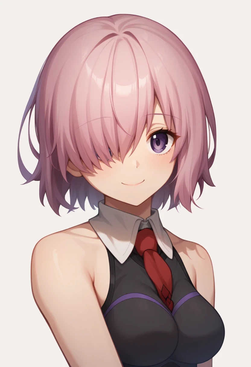 keyword:mash kyrielight,hair over one eye, glasses, jacket, black dress, red necktie