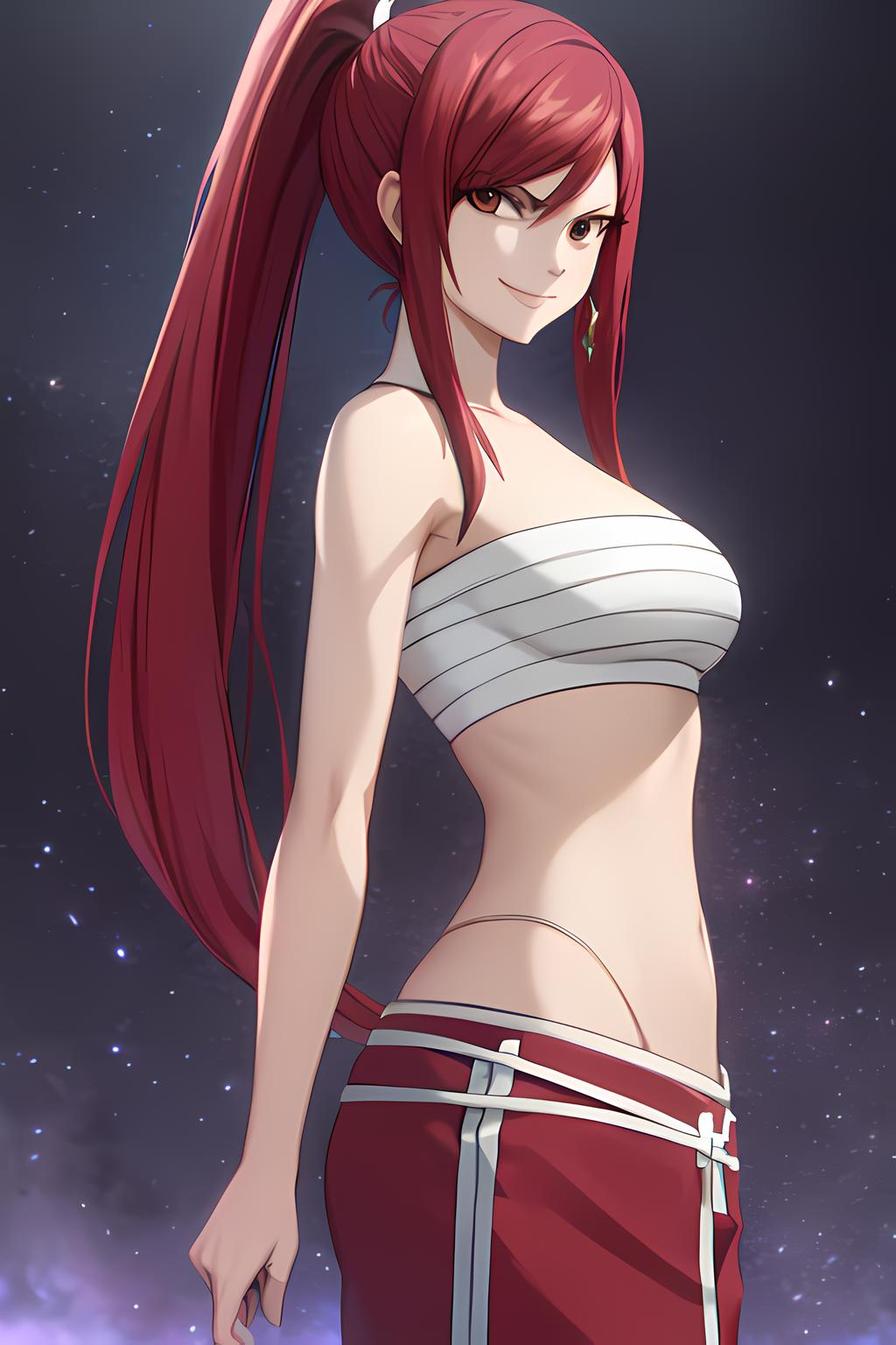 sarashi, ????? sarashi, red hakama, midriff, ???? shoulders, ponytail - Clear Heart Clothing
