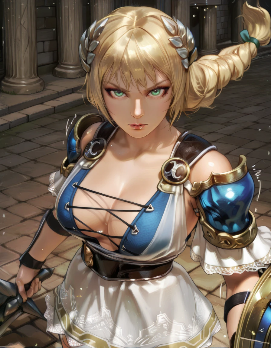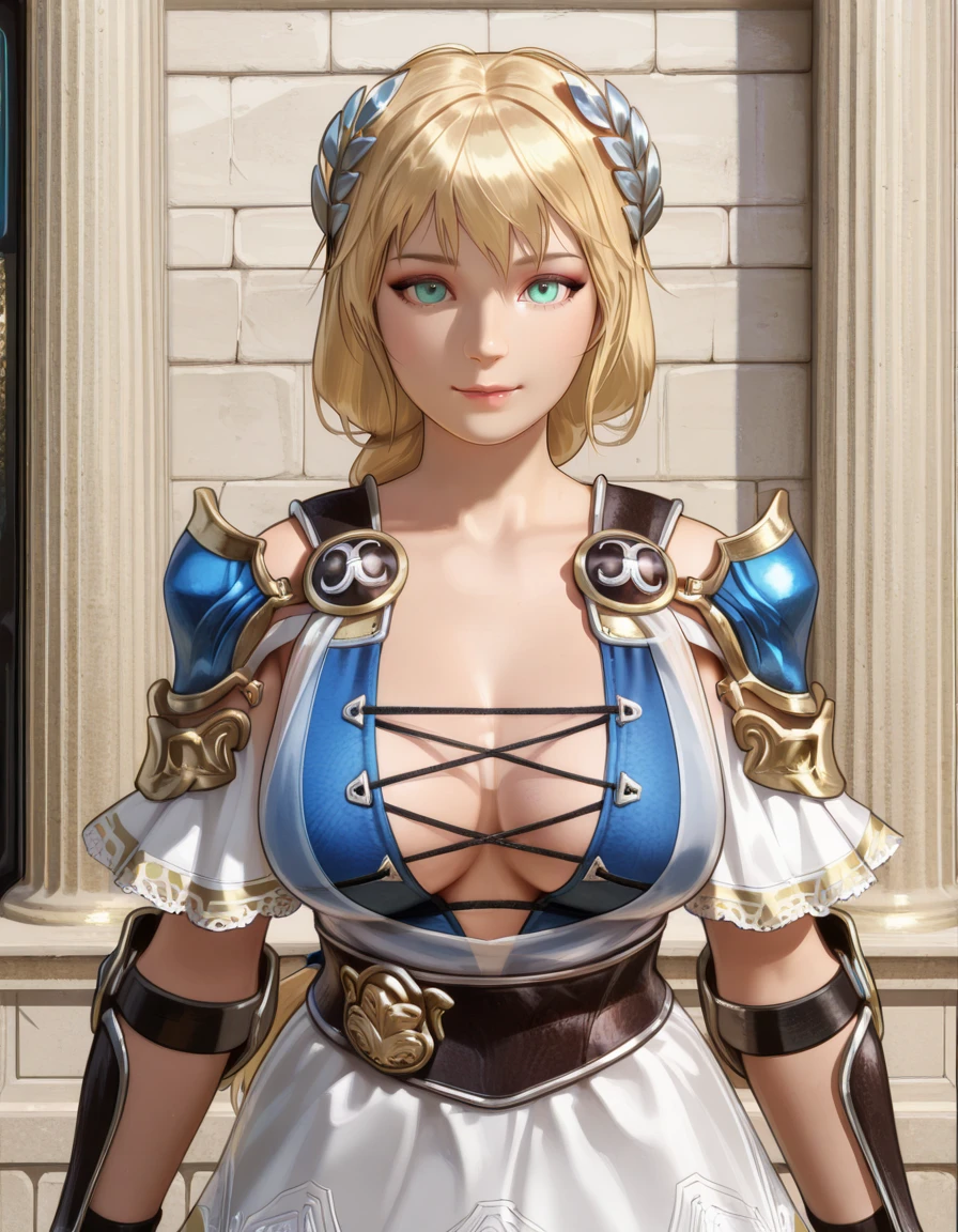 sophitia, blonde hair, aqua eyes,