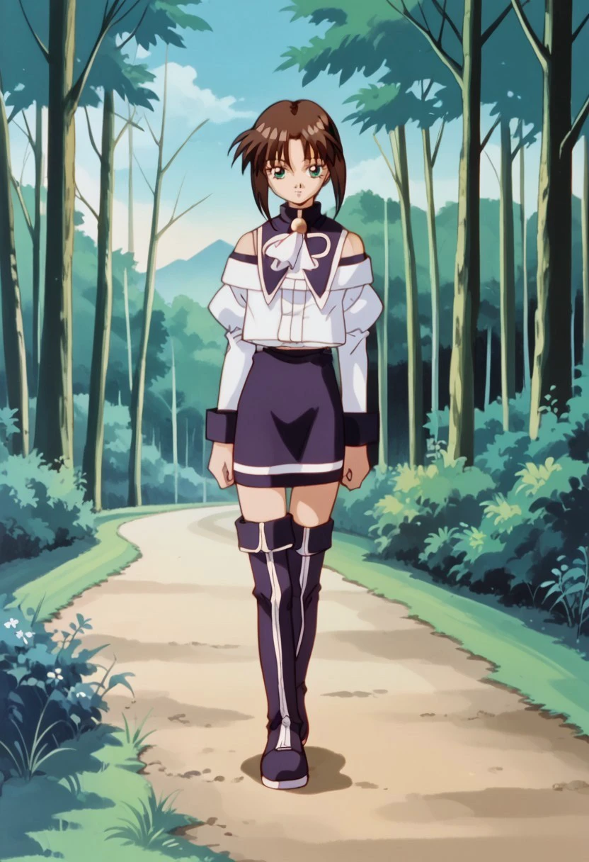 capelet, neck bell, ascot, off-shoulder shirt, shoulders, juliet sleeves, long sleeves, sleeve cuffs, circle skirt, fold-over boots, thigh boots, zettai ryouiki