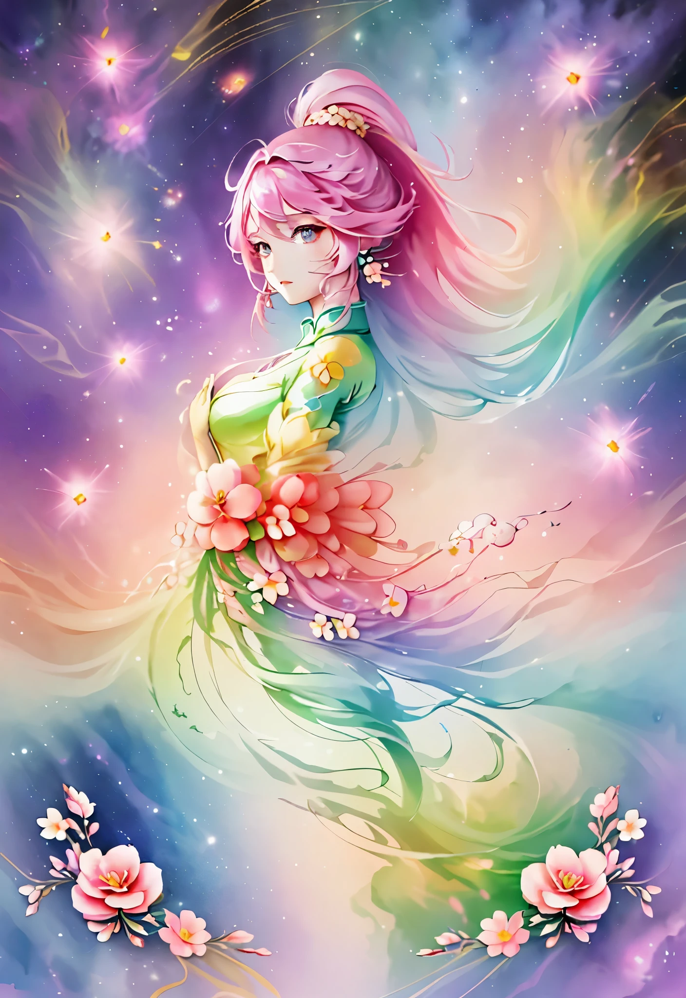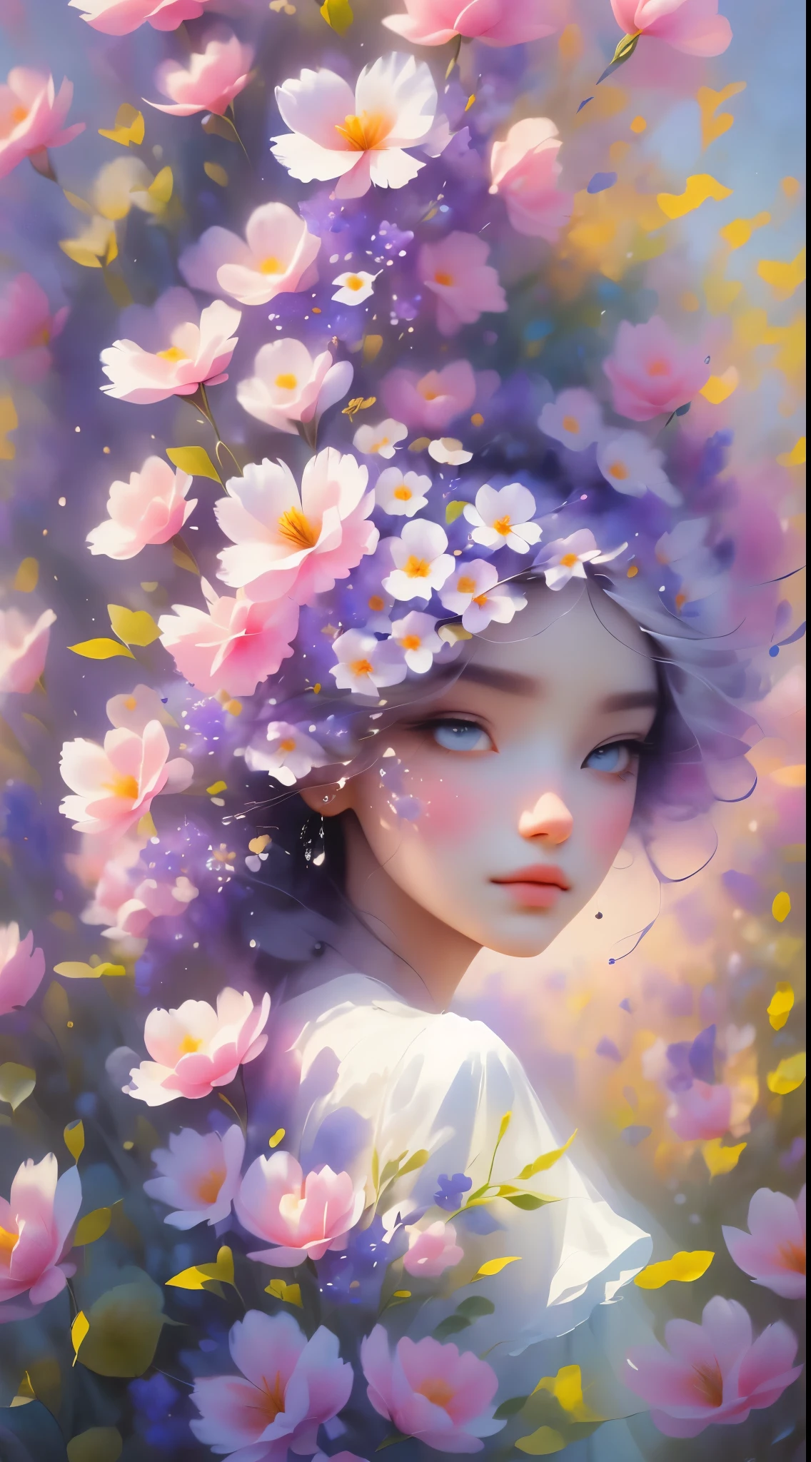 推荐提示词:各种花卉名称,柔和,淡雅,梦幻,泼墨,清新