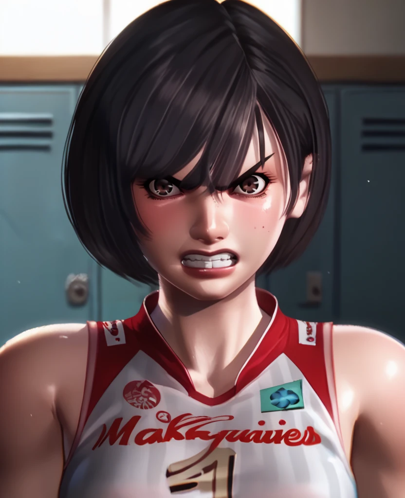 volleyball uniform, red shorts, sleeveless,