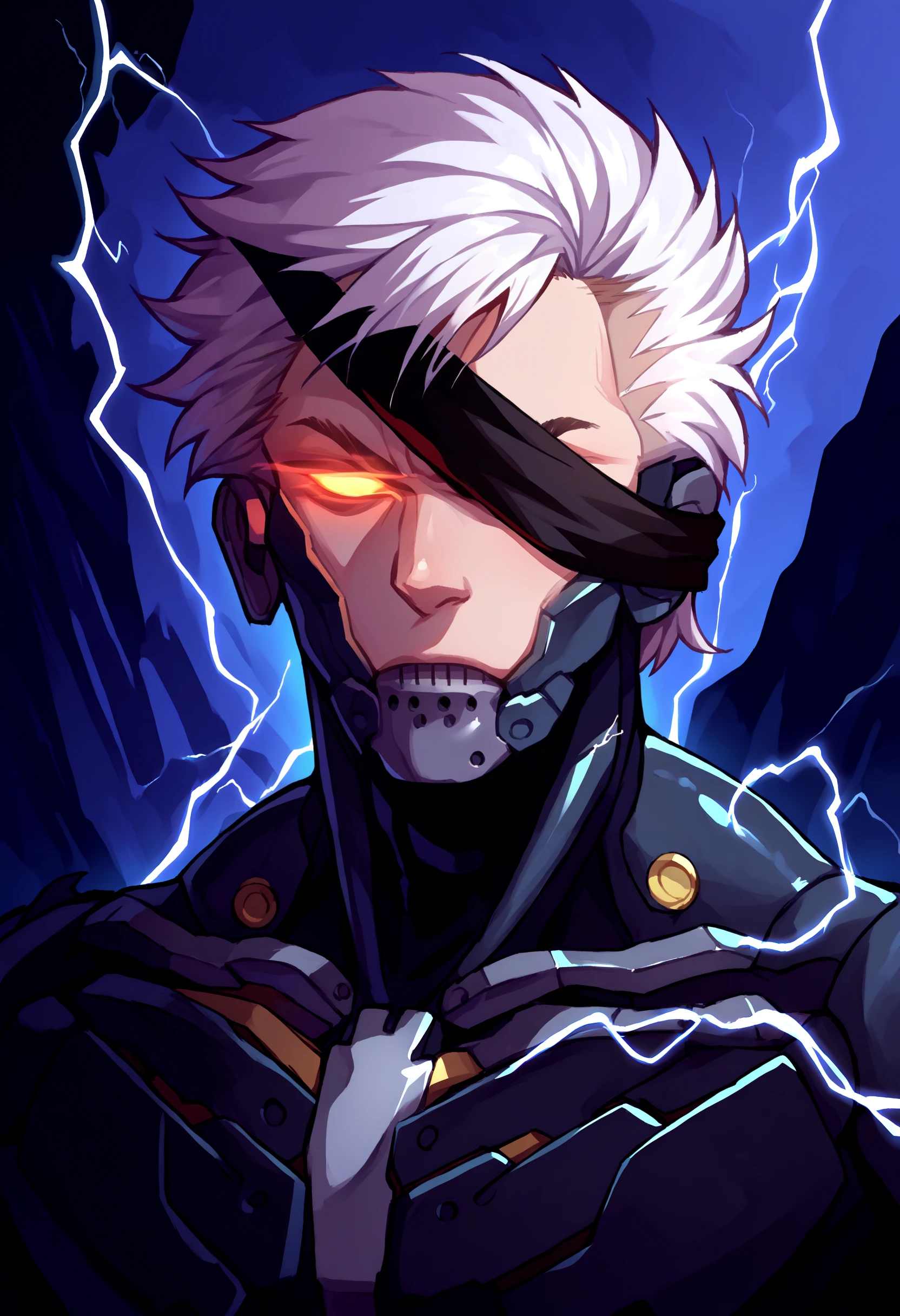 electricity, upper body, glowing eyes, no eyes