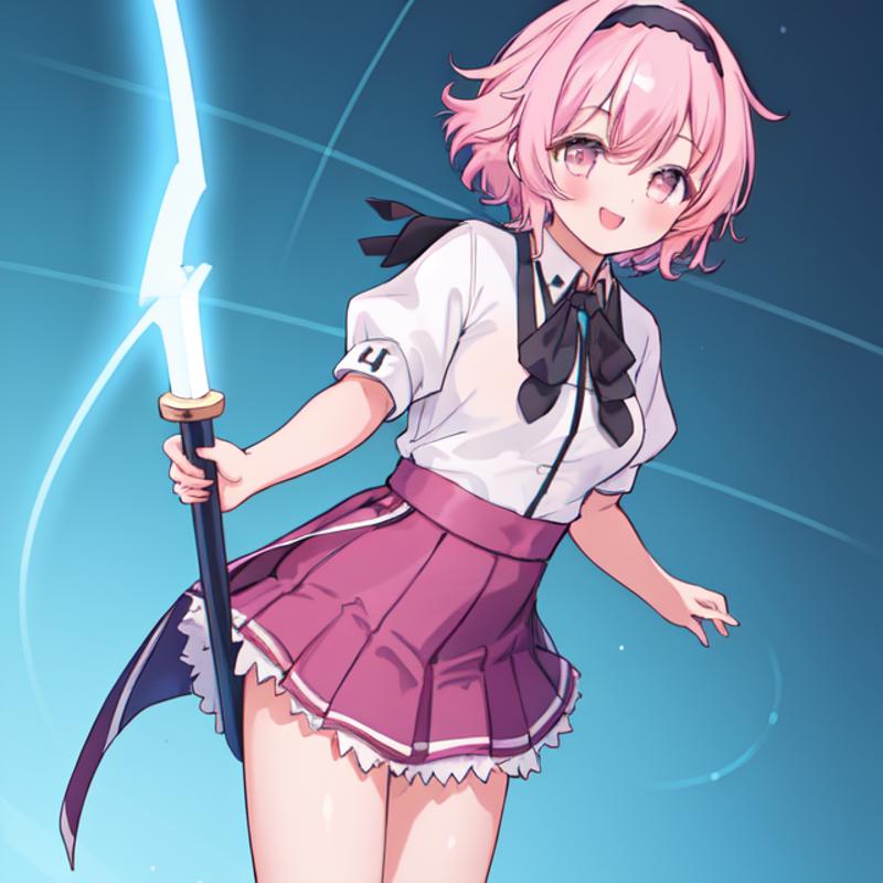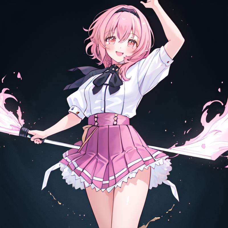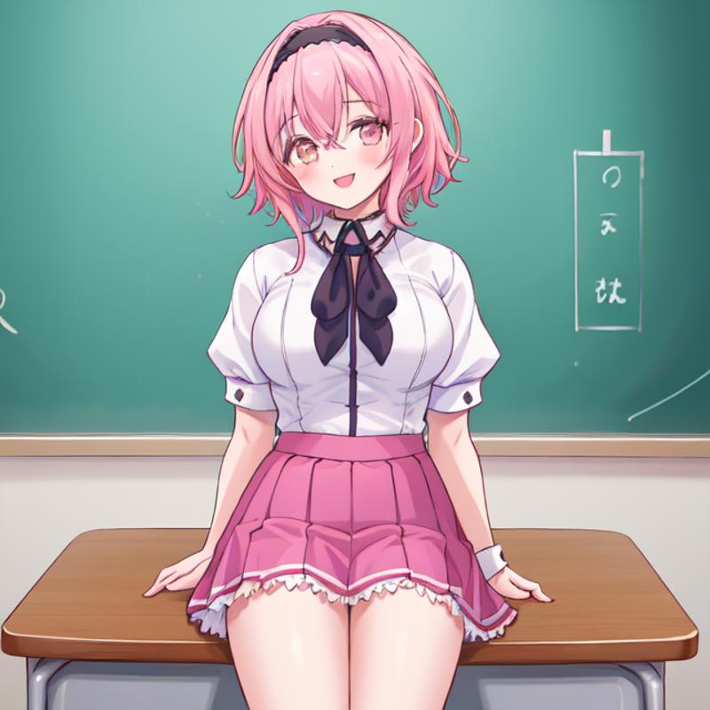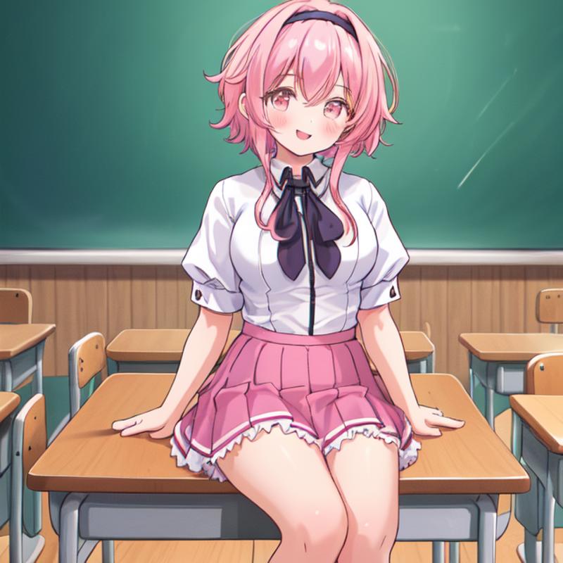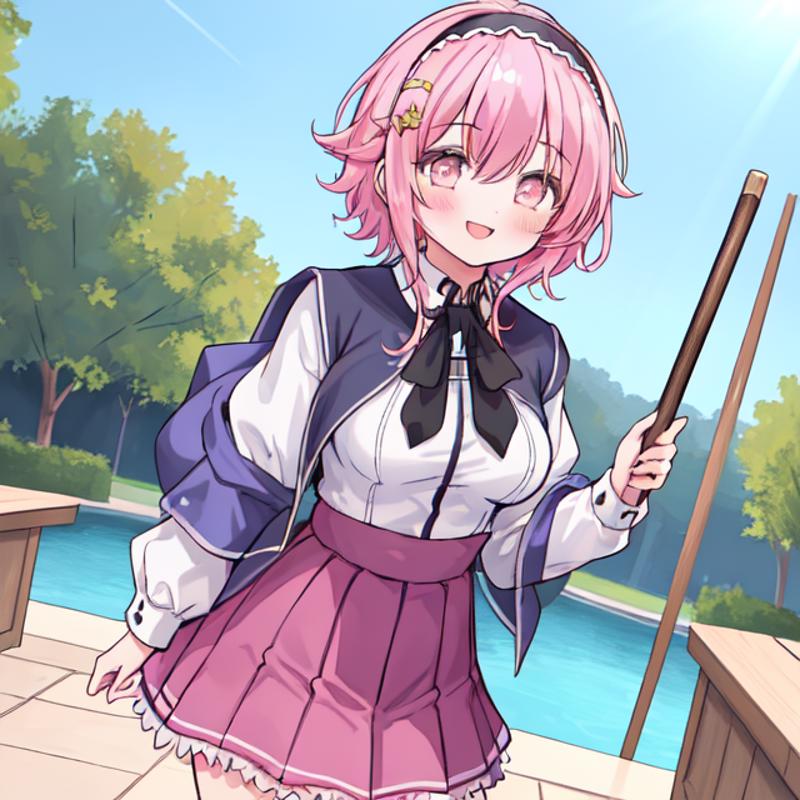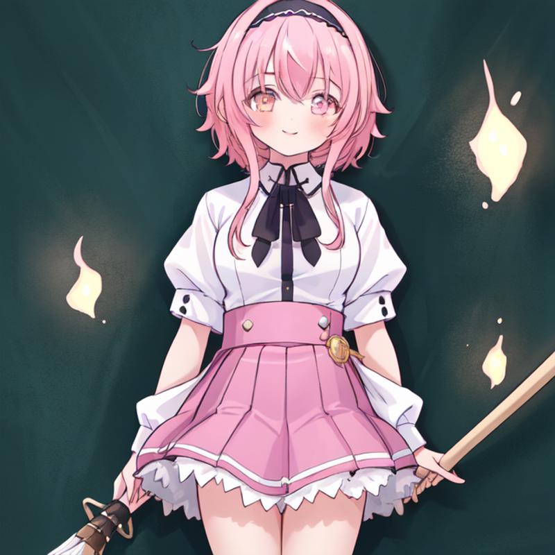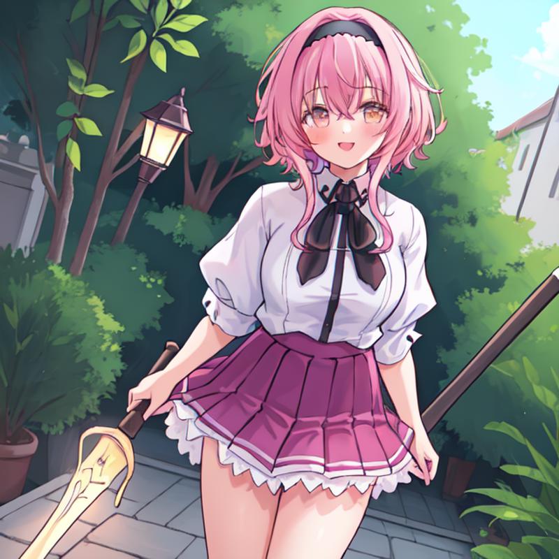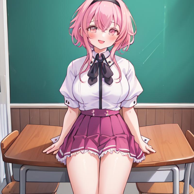 helpful tags: red pleated skirt, white shirt, school uniform, black capelet