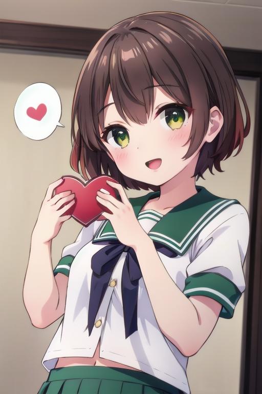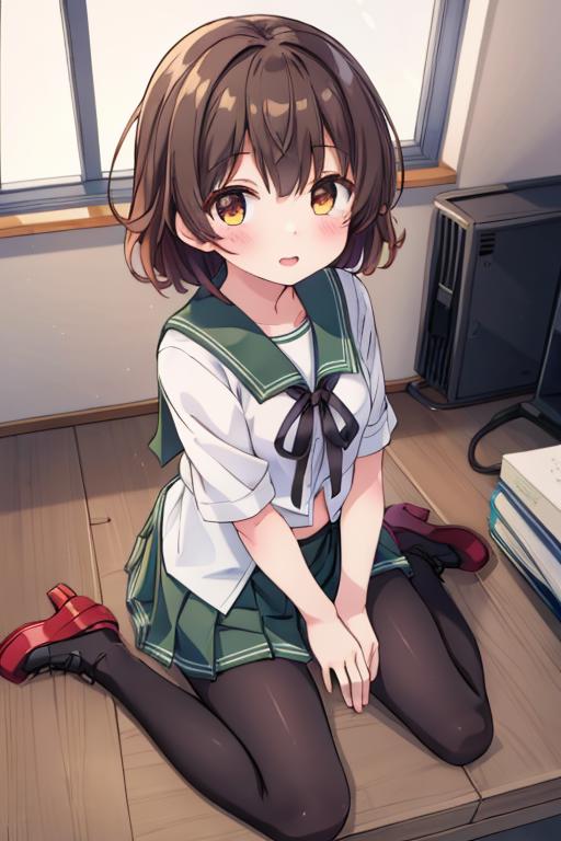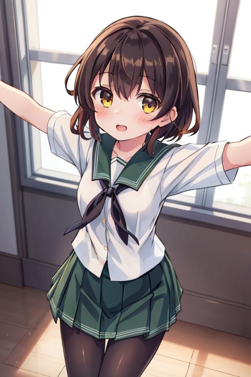 MutuskiKC, (Mutuski) uniform, (white) serafuku, (green) sailor collar, (green) pleated skirt, (black) pantyhose, shoes