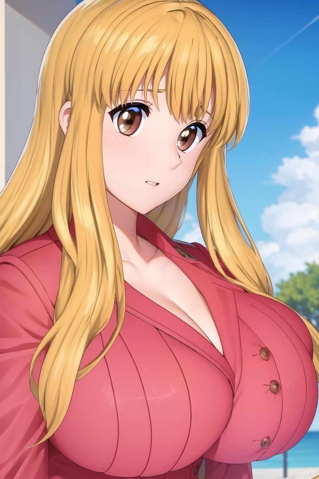 blonde_hair,long_hair,bangs,(brown_eyes),