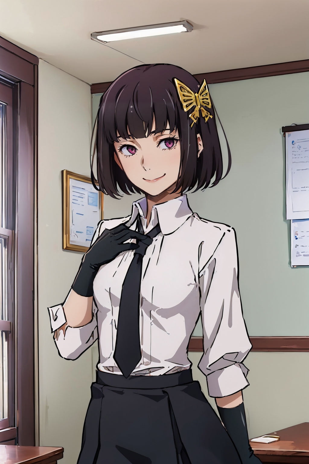 Default Outfit: white shirt, black necktie, black gloves, black skirt, pantyhose
