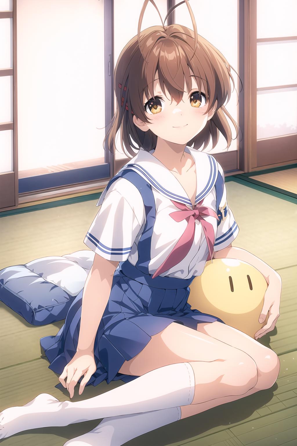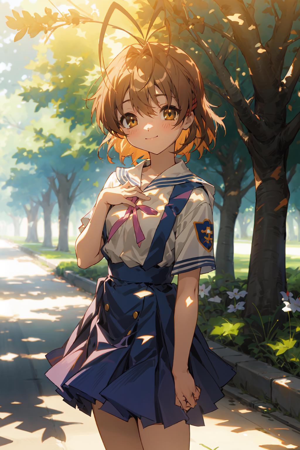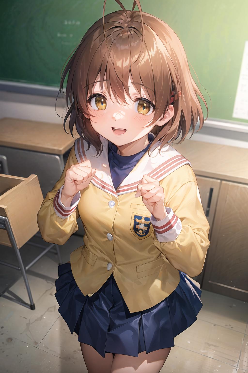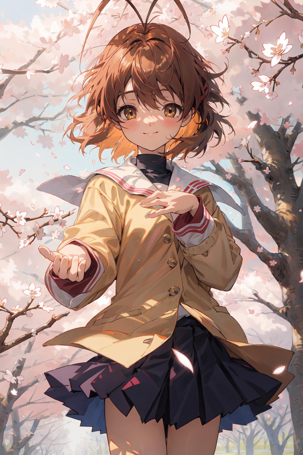 yellow jacketandblue skirtfor guidance.如果想要人物穿着夏季校服,尝试添加