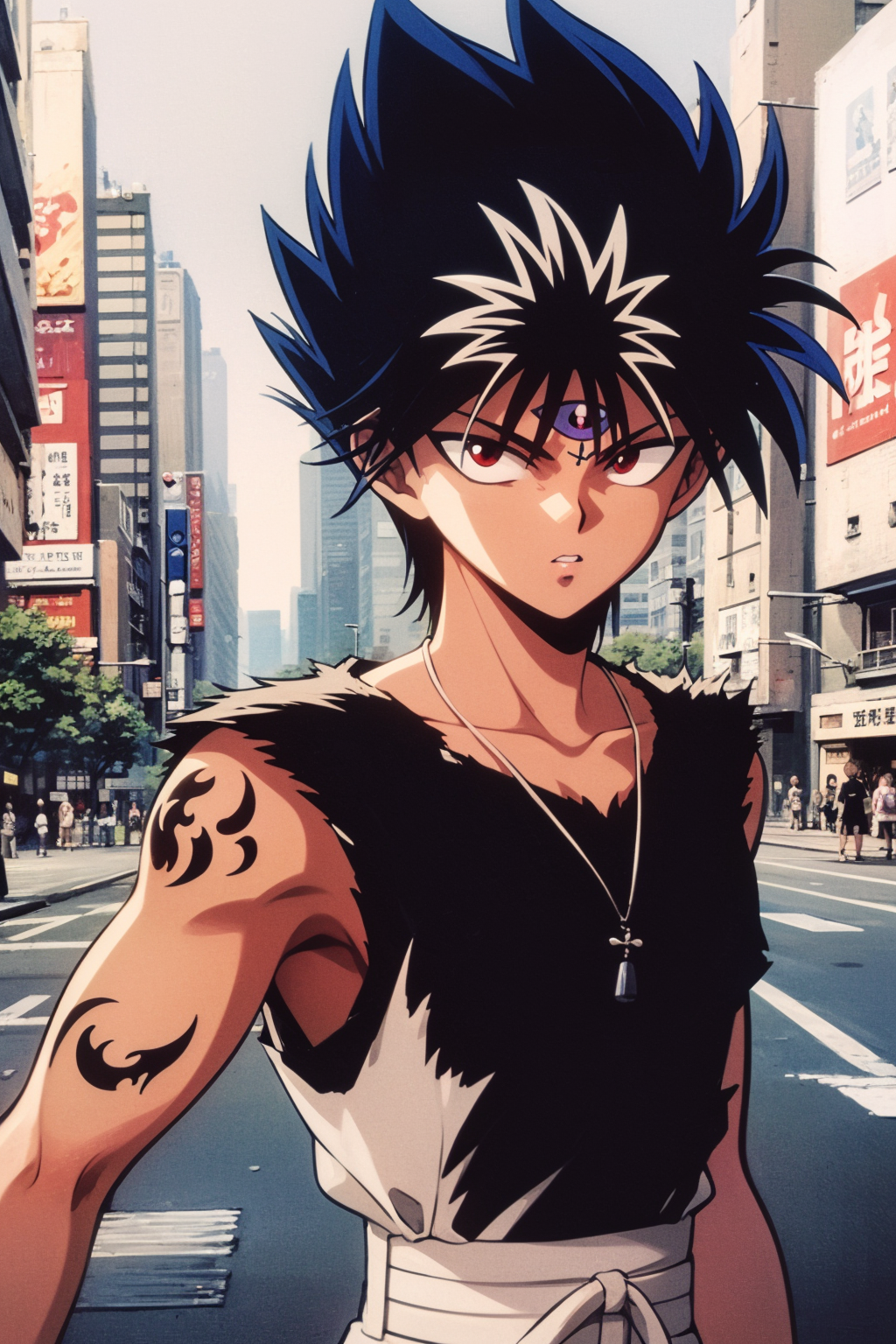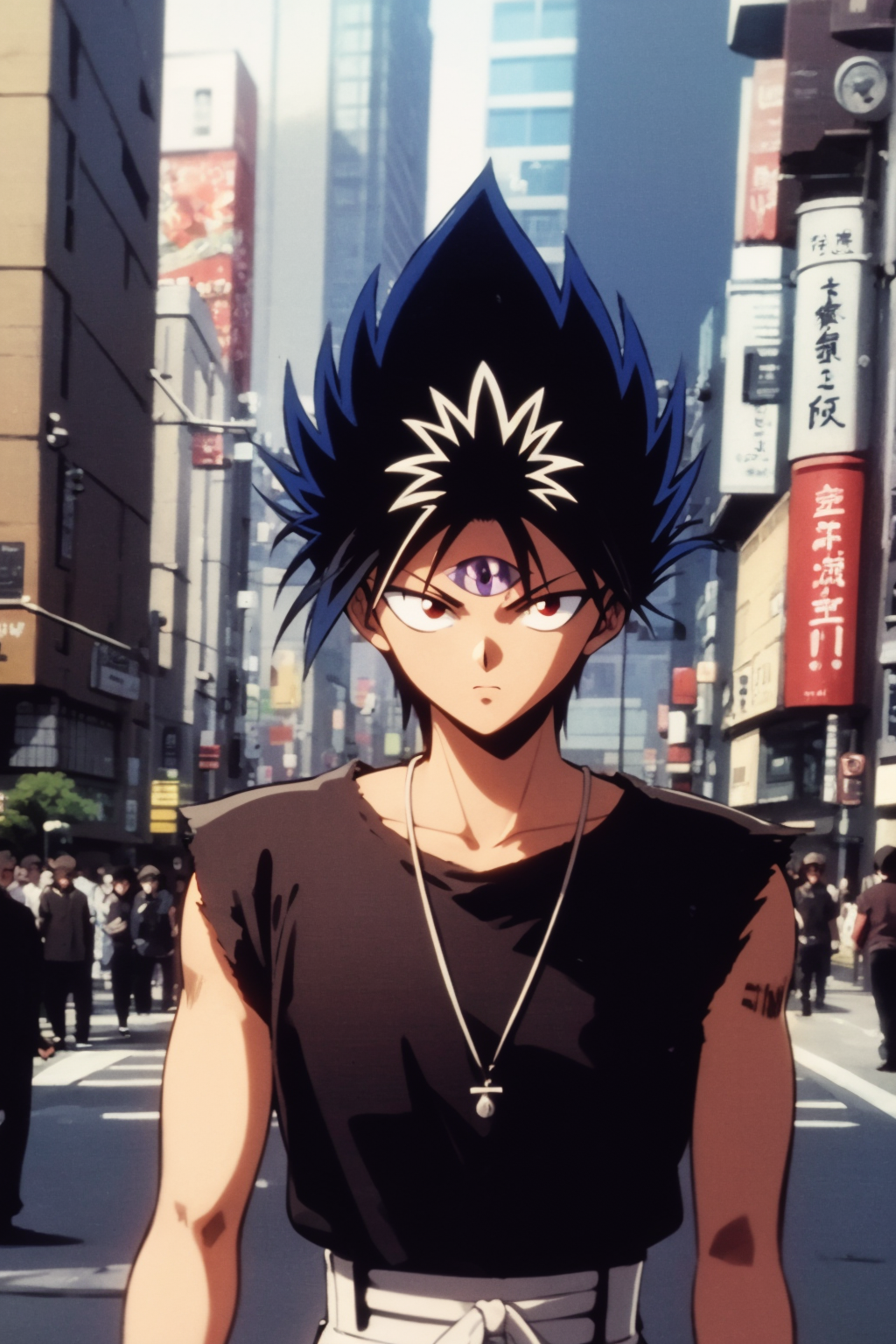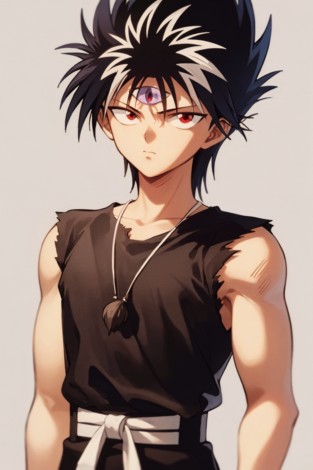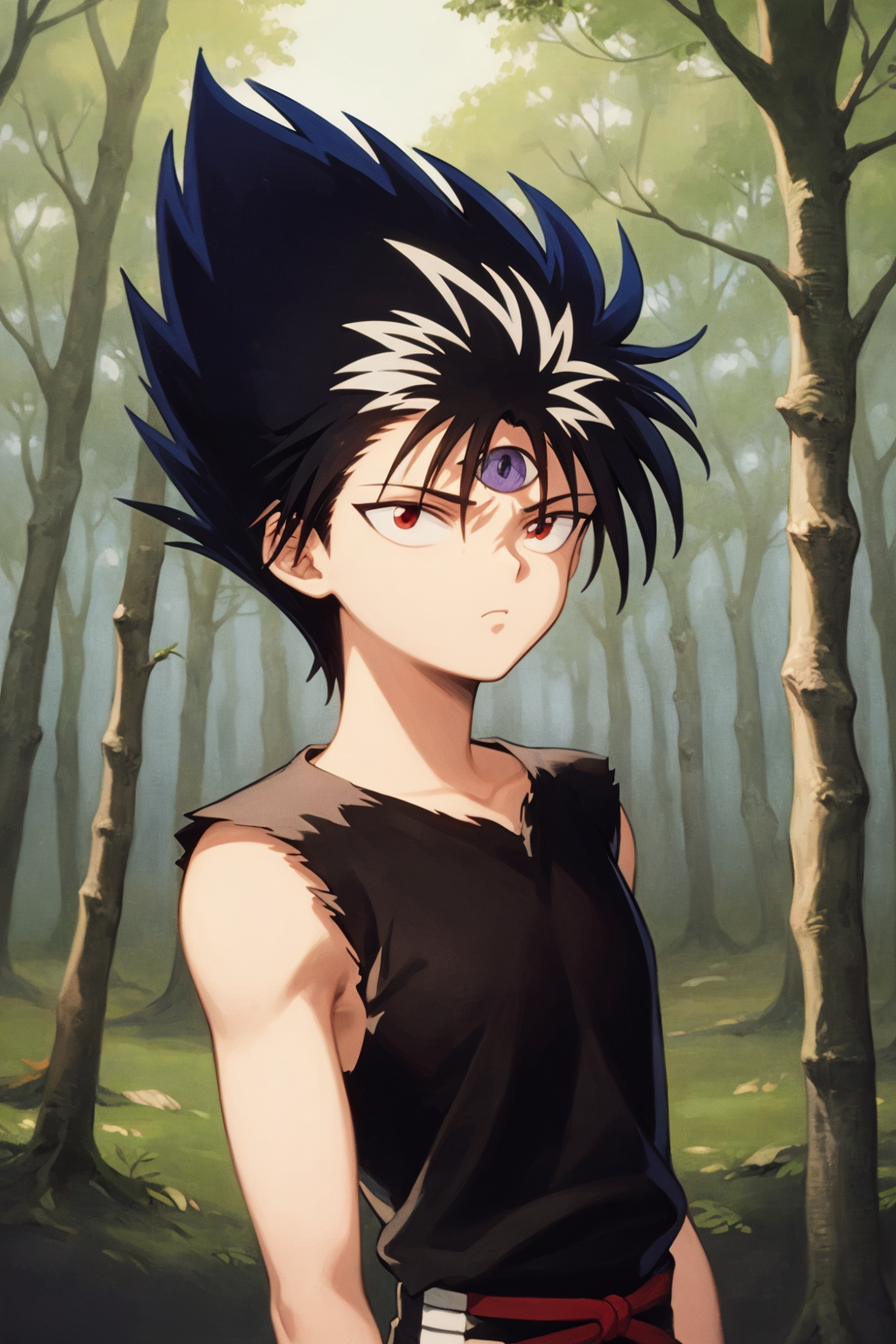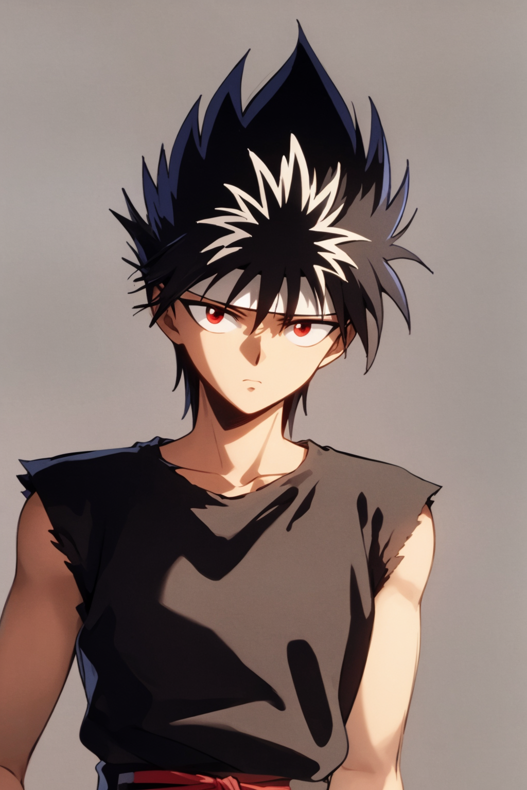 Basic prompts : 1boy, black hair, white hair, spiked hair, red eyes