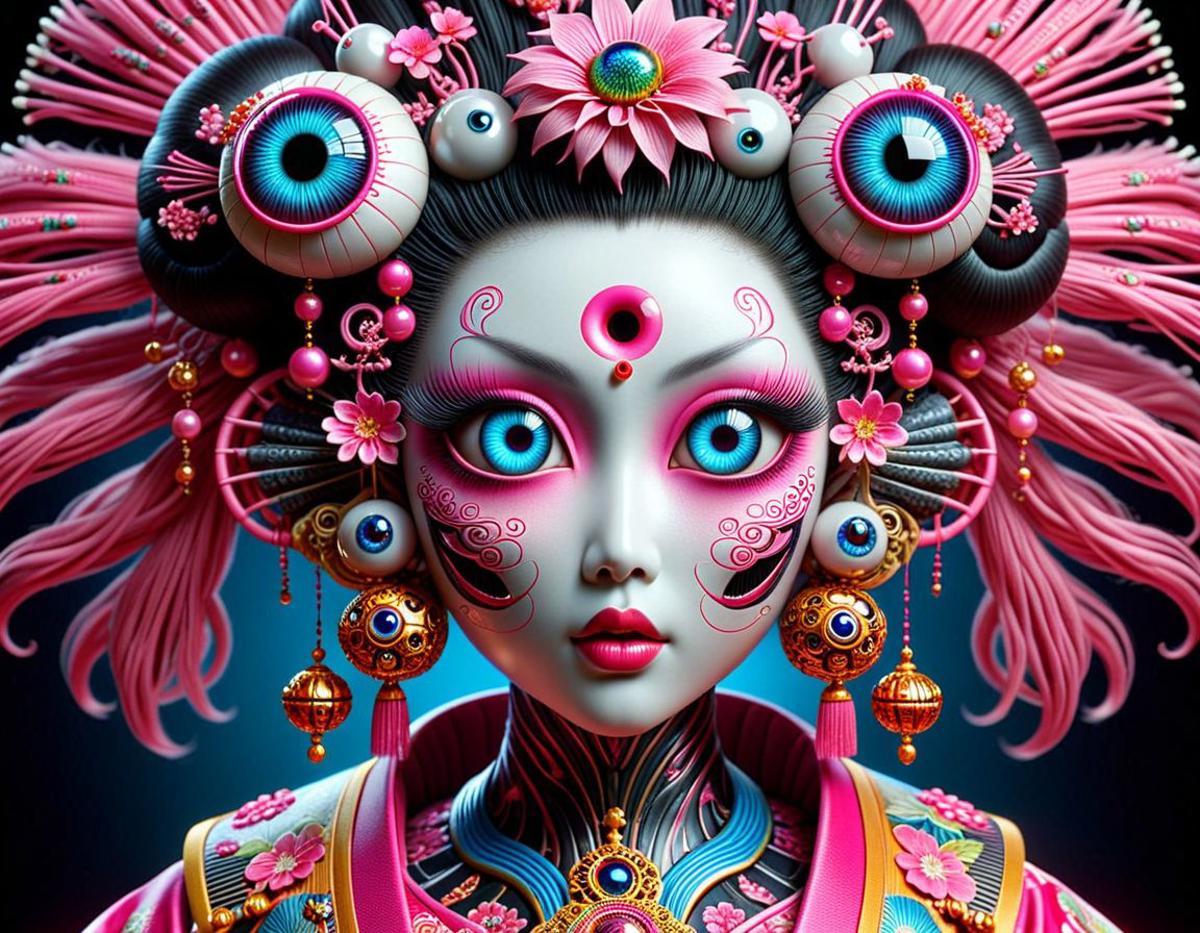 no need for sophisticated prompts such as helios, geisha, eyes, mouth, teeth, psyche, colorful and so on is enough to create surreal psychedelic stuff. at least it works for me.