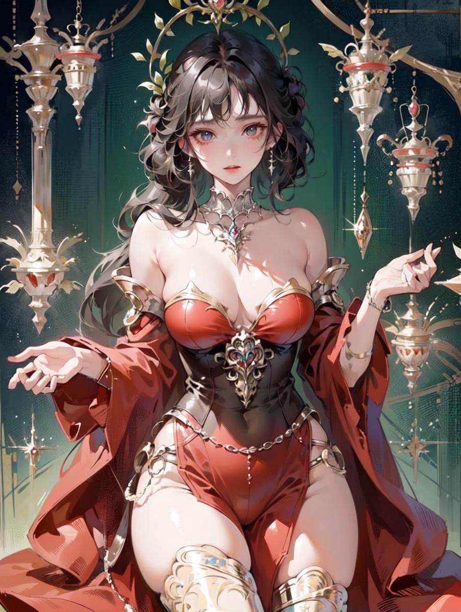 The empirical output is closer to the low-cut black dress and the black, red, and gold color gorgeous court style. Also, 2.5D face has also improved a lot.