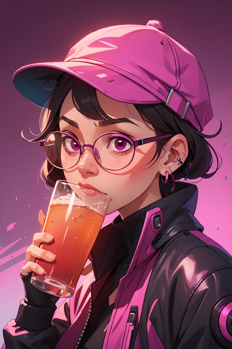 masterpiece,best quality,1girl,saibo,cyberpunk,hat,earrings,simple background,pearls and jewels,yellow background,sunglasses,