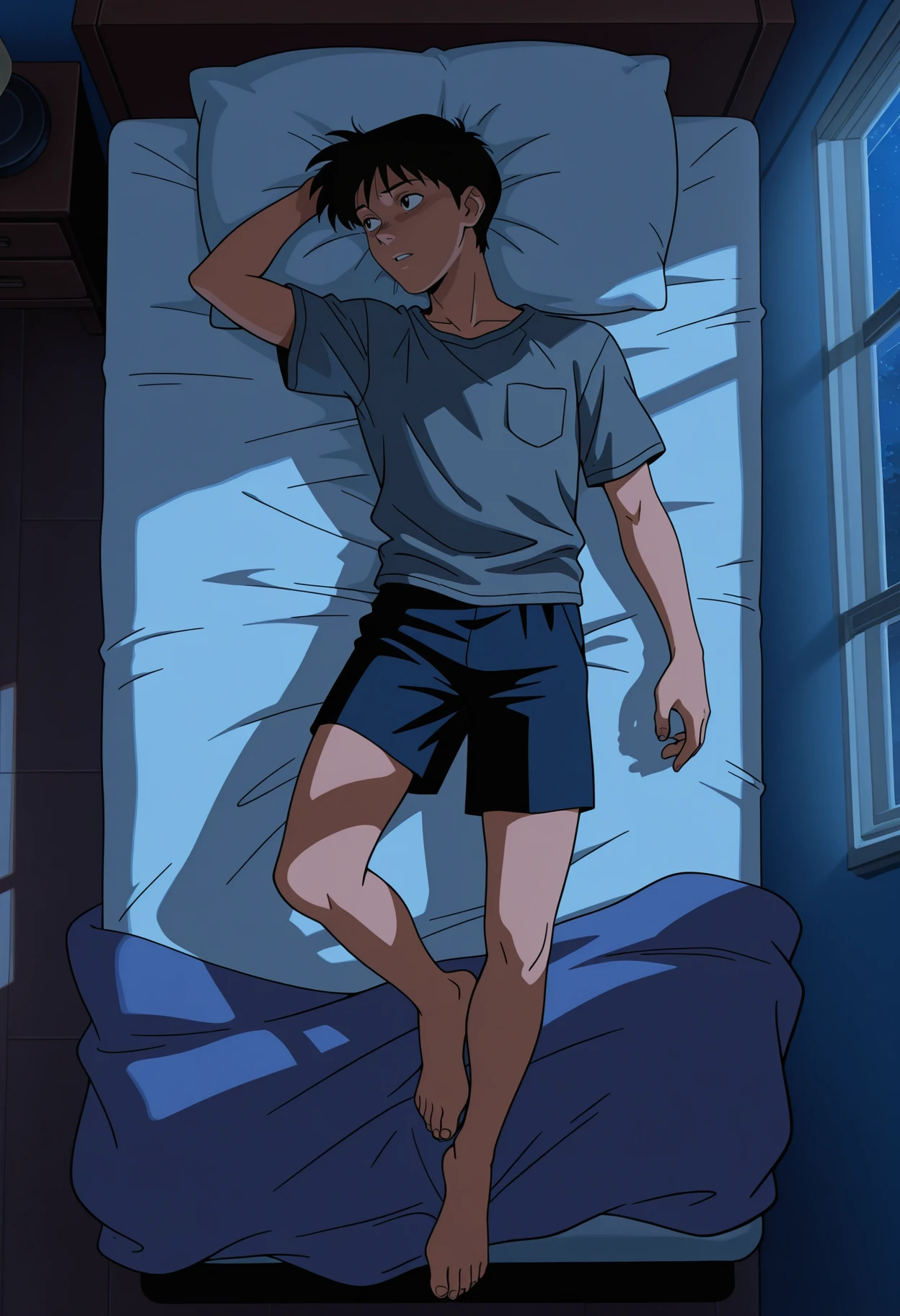 1boy, solo, male focus, blue eyes, brown hair, black hair,