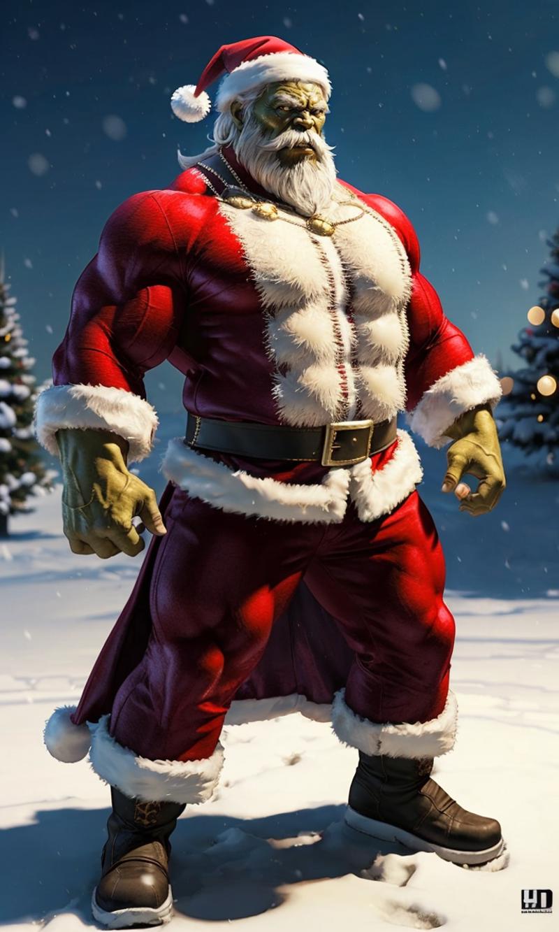 I thought he would be perfect for the team as he is big mean and green, and has a great big Santa beard. I was trying to prompt him earlier with very mixed results, so I just went ahead and made the Lora instead.