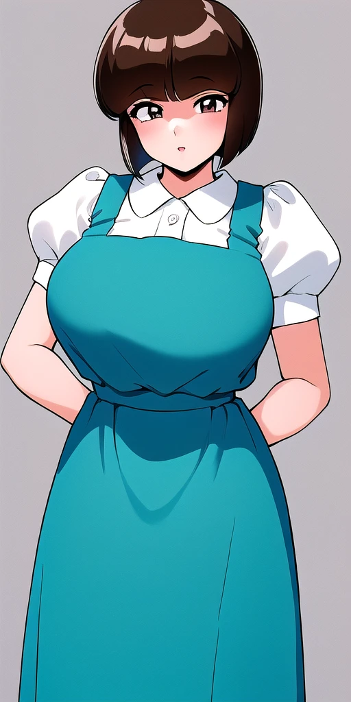 School_uniform_Blue_pinafore_dress_Puffy_sleeves_white_collared_shirt_Blue_back_bow: the furinkan uniform
