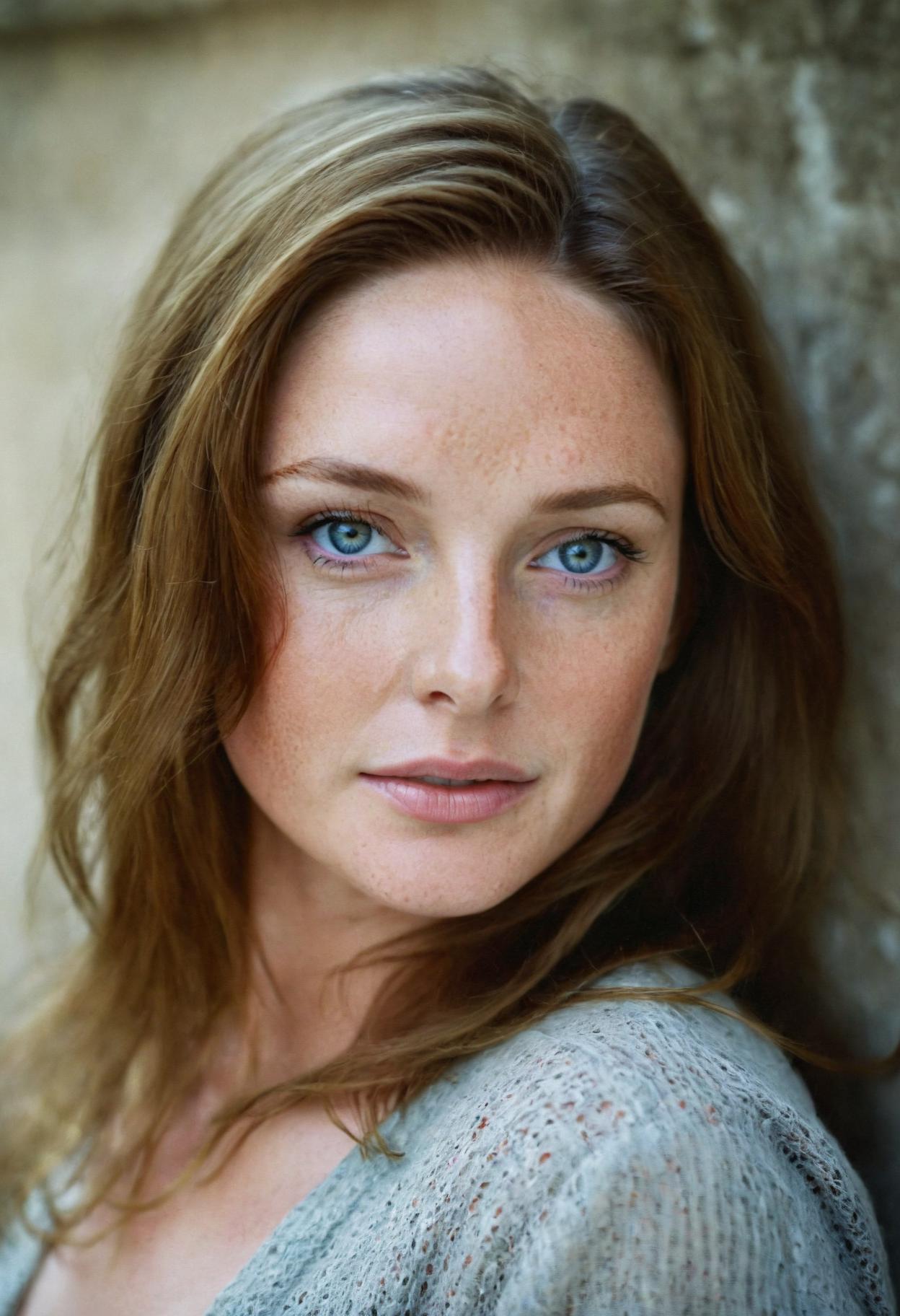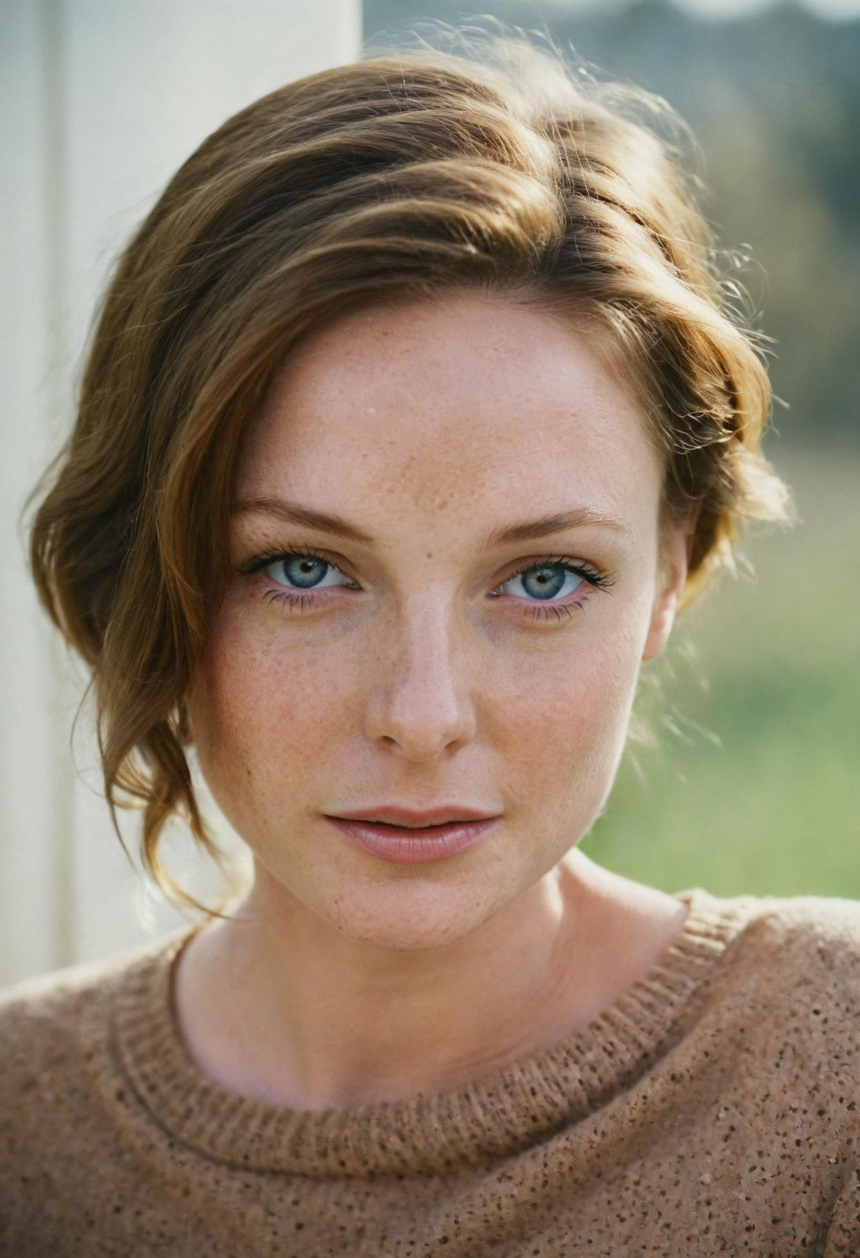 Adjust freckles, eye, and hair color with something like (freckles:0.5), (blue eyes:0.7) to get a slightly different look.