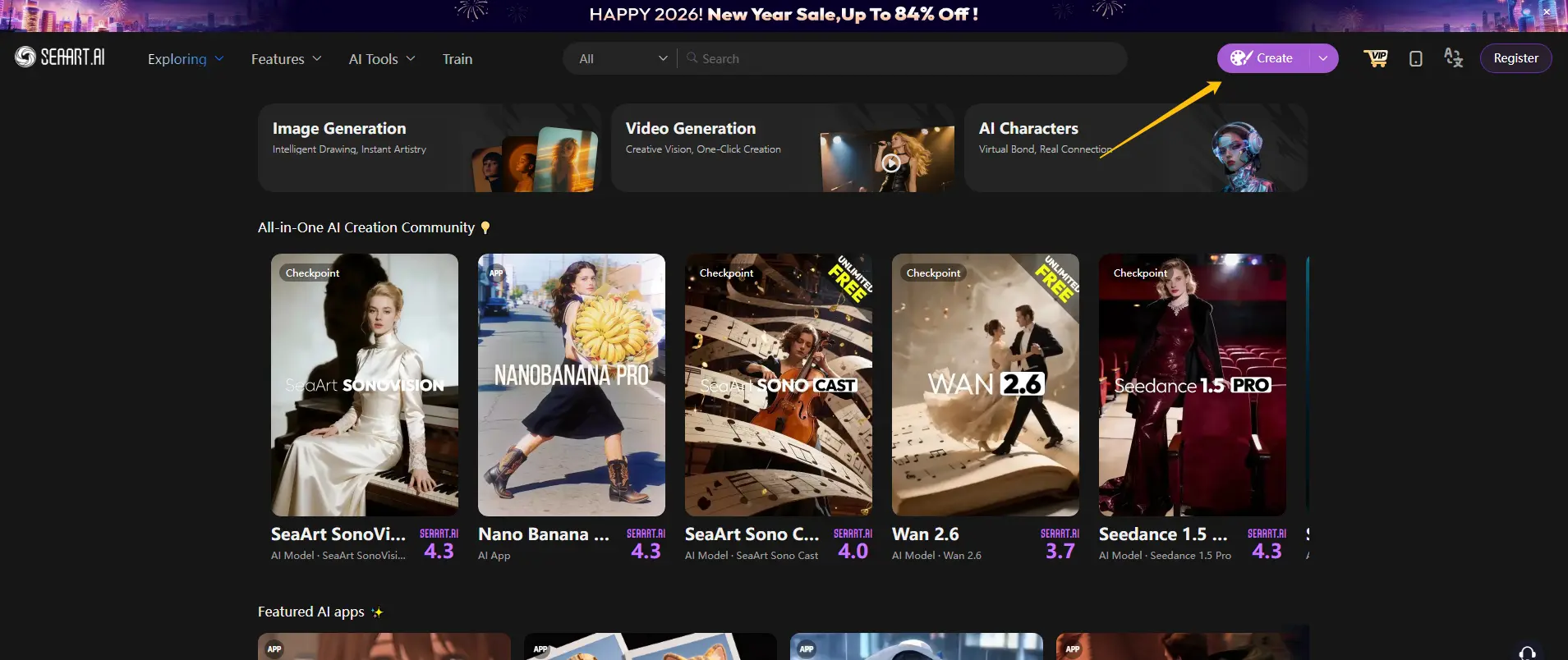 1. Acesse o estúdio: Entre na ferramenta de Geração de Vídeo do SeaArt.