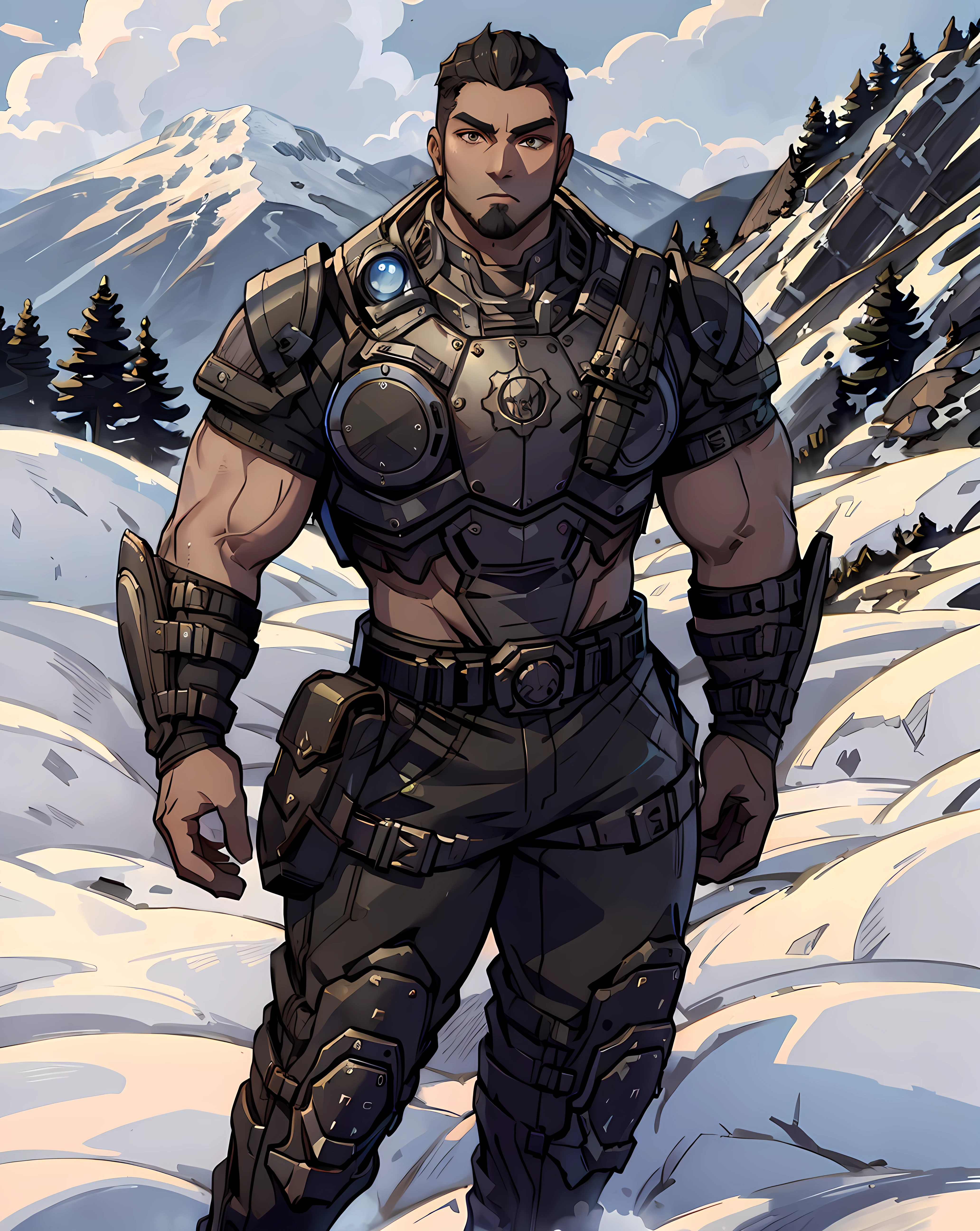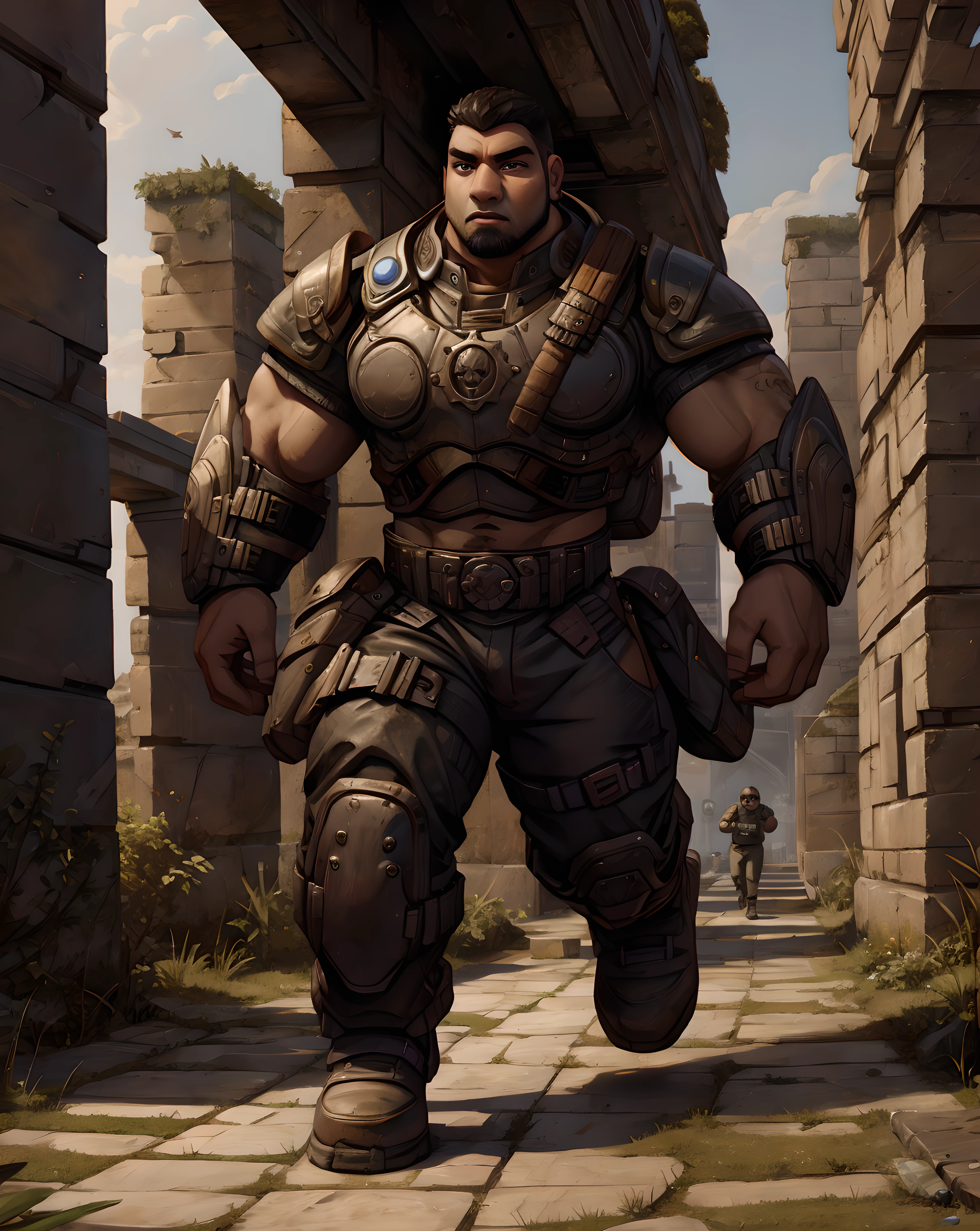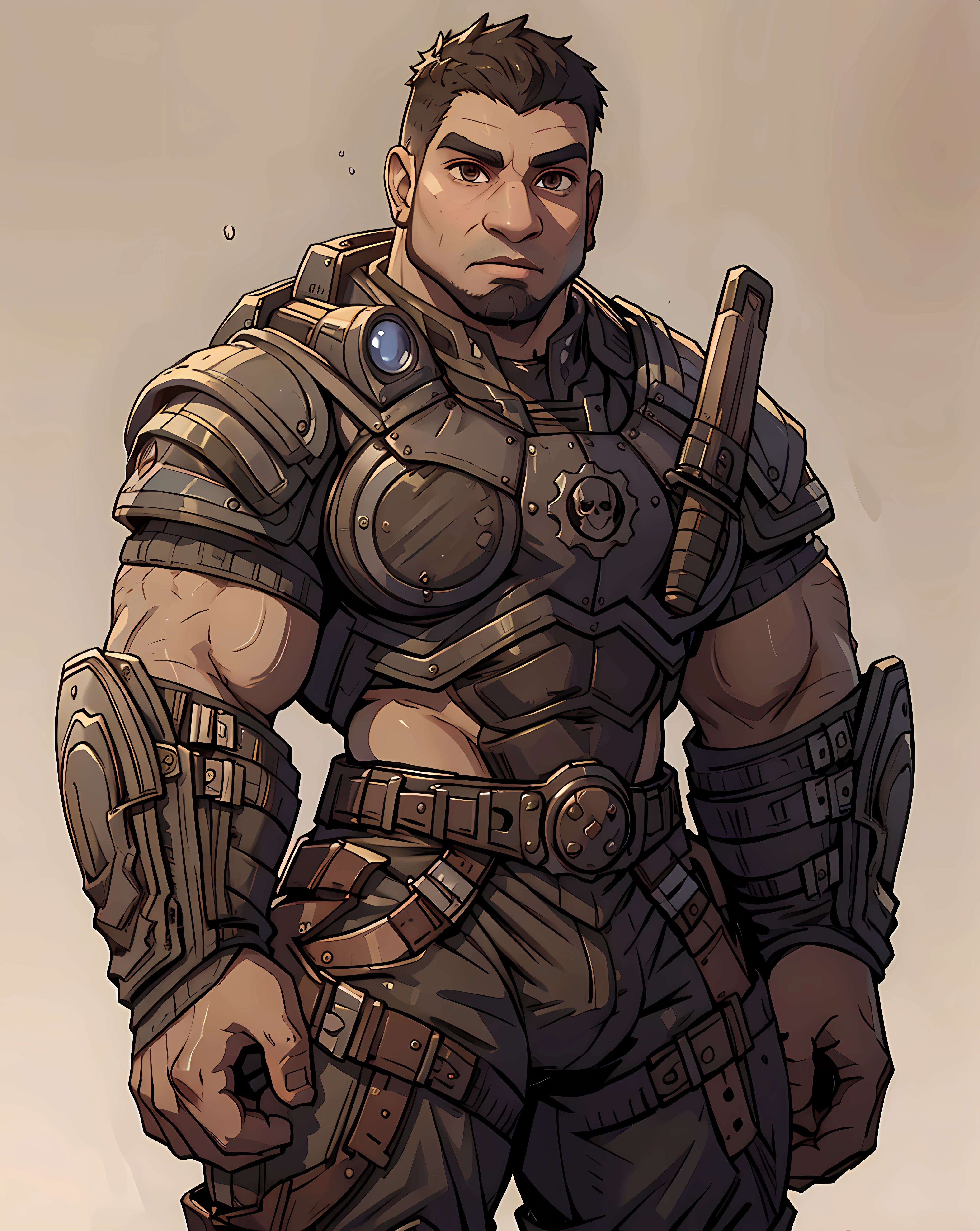 I made Dominic Santiago or known as Dom in Gears of War community. This loveable man was Marcus Fenix's best friend and right hand. I think Dom deserved to be made into a LoRA so you can made some artwork based on him. If you want to use Dom with his big beard like in Gears of War 3, you can visit this link instead: Full Beard Dom. Enjoy!