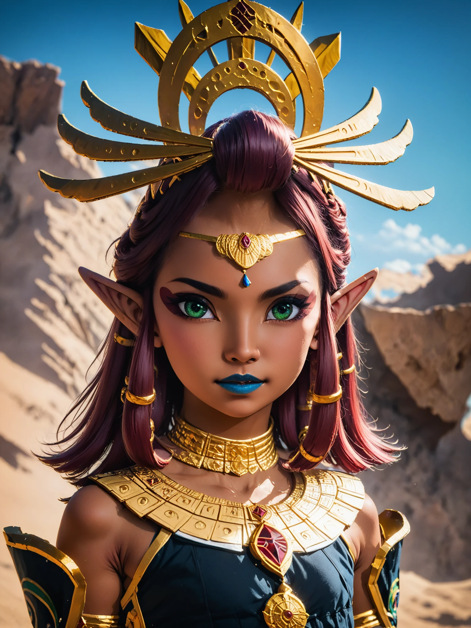 Additional tags: green eyes, red hair, jewelry, blue lips