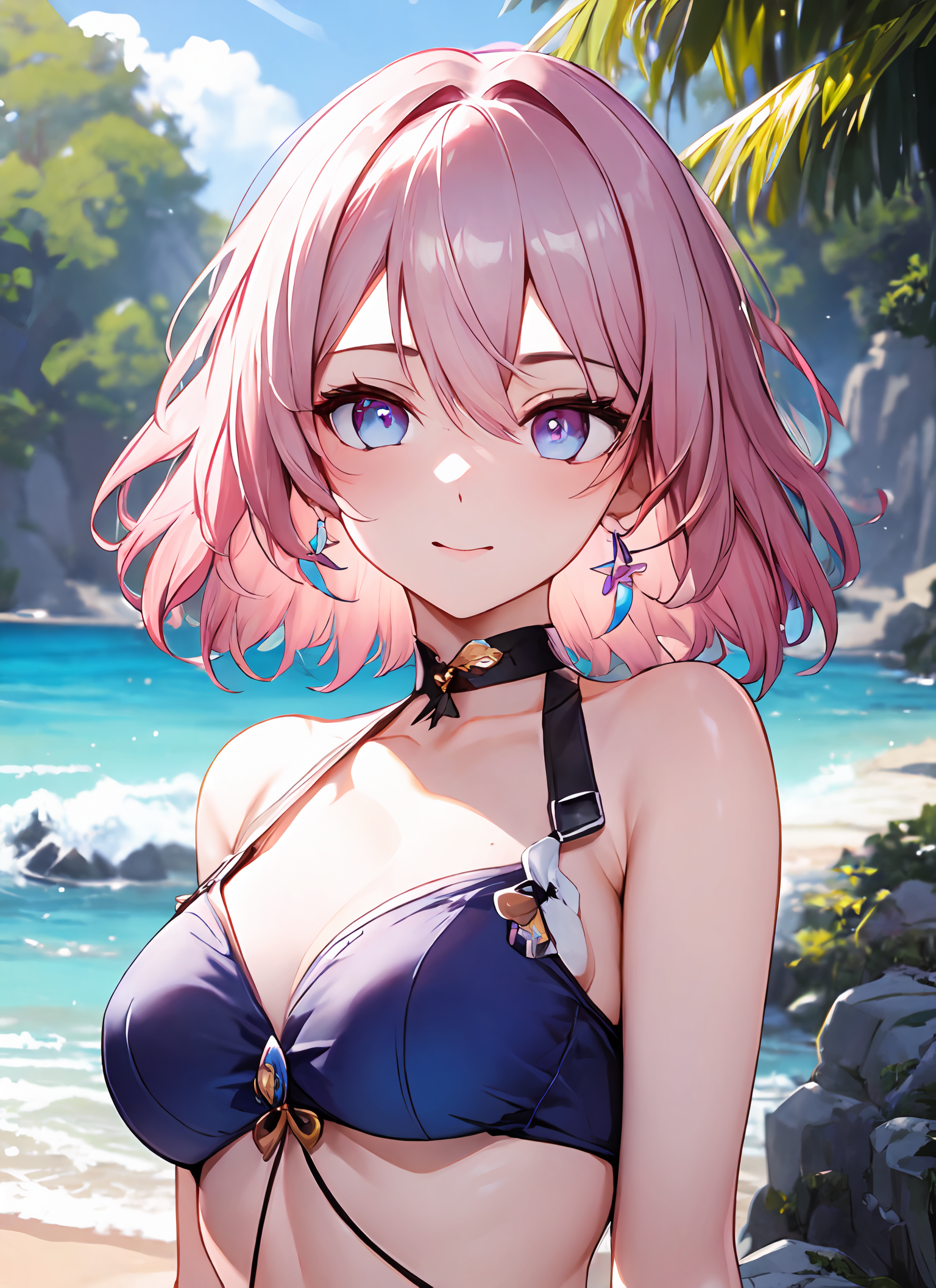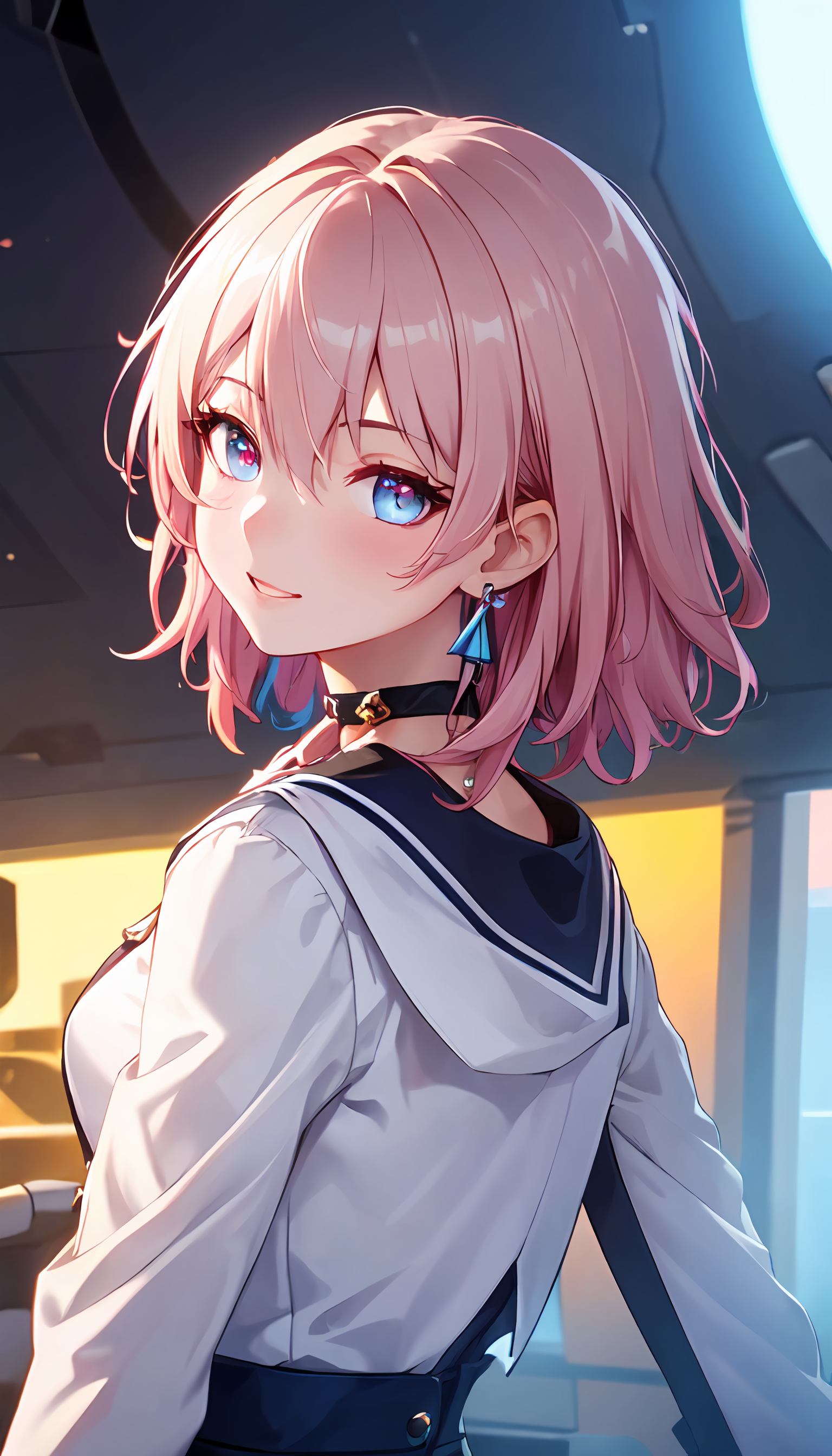 Necessary trigger words : ph_Mar, Marhd, Mards, 1girl, solo, jewelry, blue eyes, pink eyes, hair between eyes, short hair, purple eyes, multicolored eyes