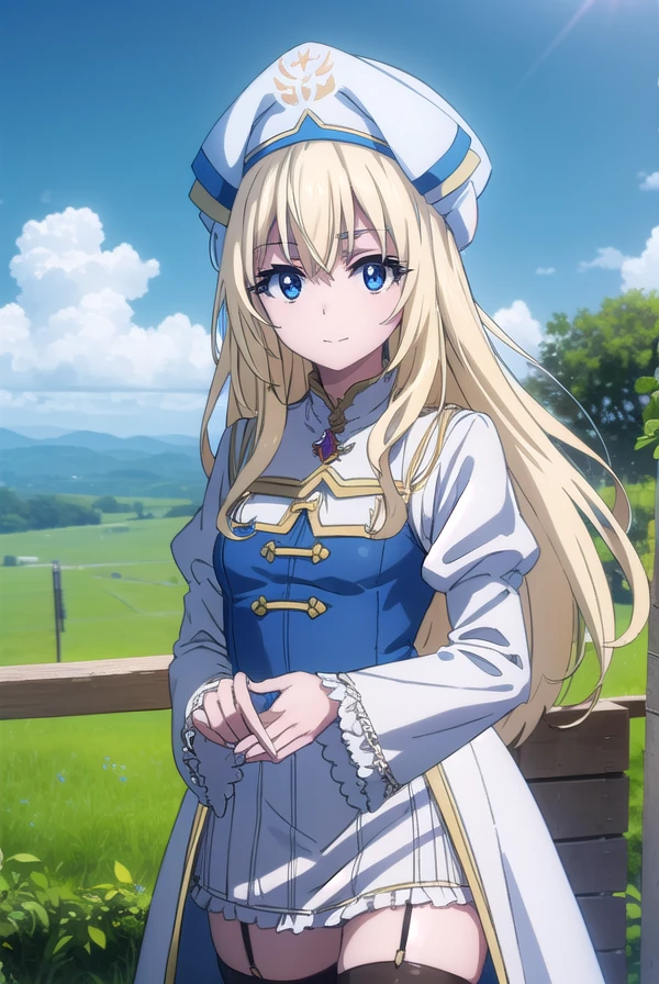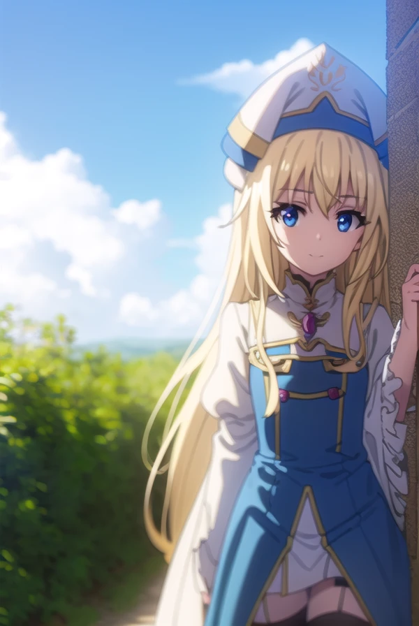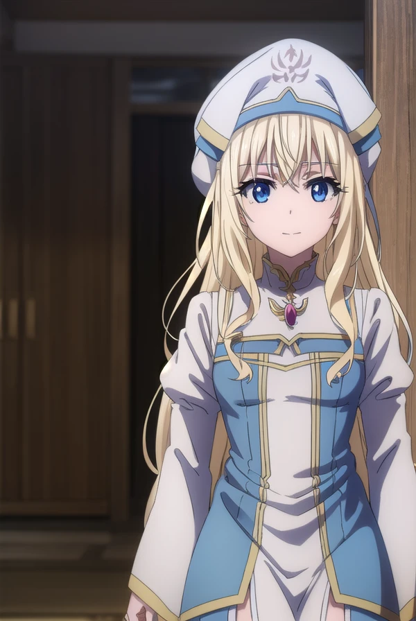 priestess, blonde hair, blue eyes, long hair, hair between eyes,