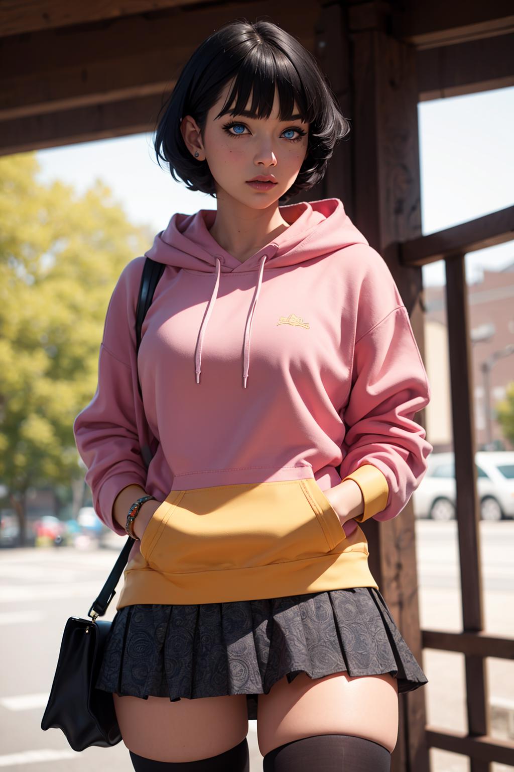 Use uzumaki_himawari in the beginning of the positive prompt.