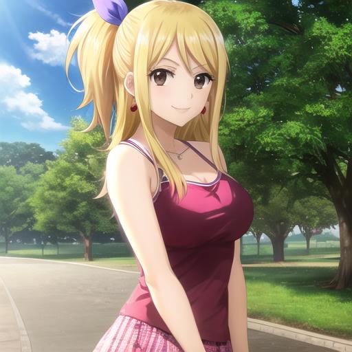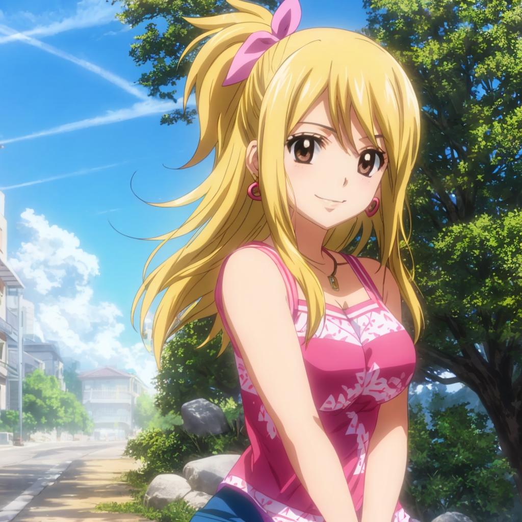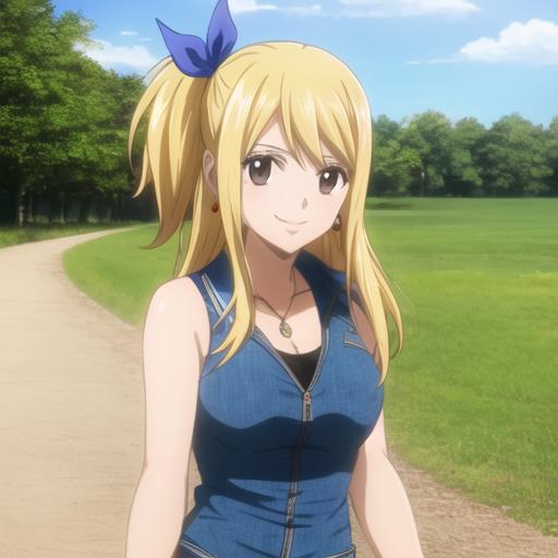 Produces very good results with the tags: lucy heartfilia, brown eyes, blonde hair.