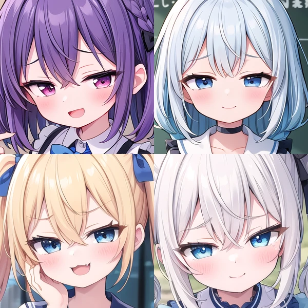 複数タイプを同時に適用したり、アイコレクション(HuggingFaceで公開中) と同時に適用することで眼の形をさらにカスタマイズすることもできます。この場合、それぞれのLoRAの強度は応分(2つなら0.5ずつにするなど)してください。