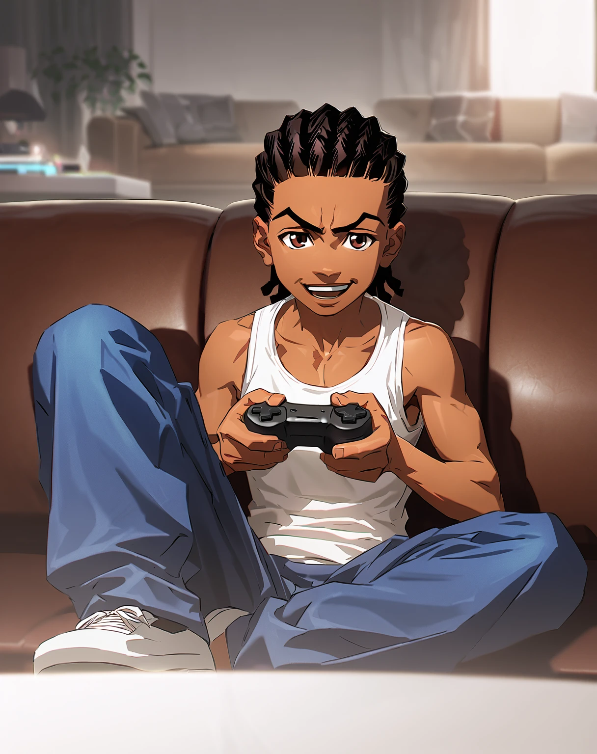 Riley Freeman is a character from the animated tv series The Boondocks. He has grown up and has become a gangsta-style young man. Unfortunately, on his path, he discovered to have something in common with his idol Gangstalicious...