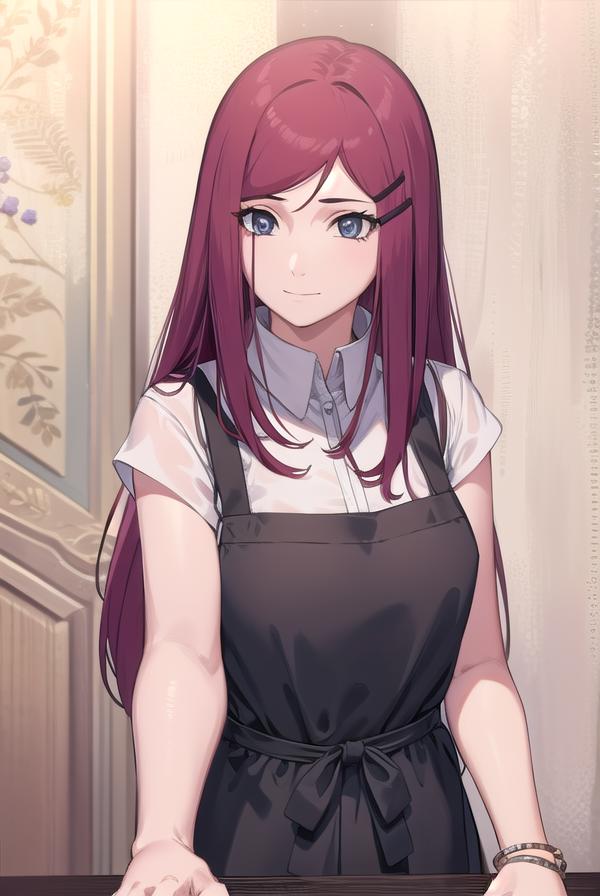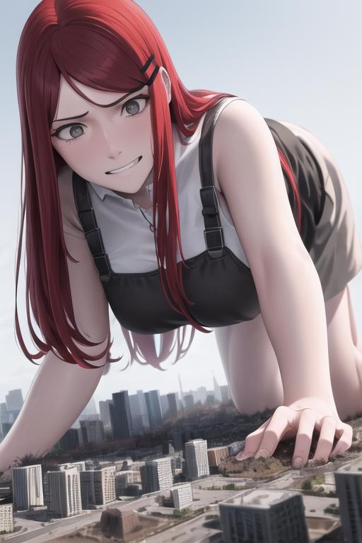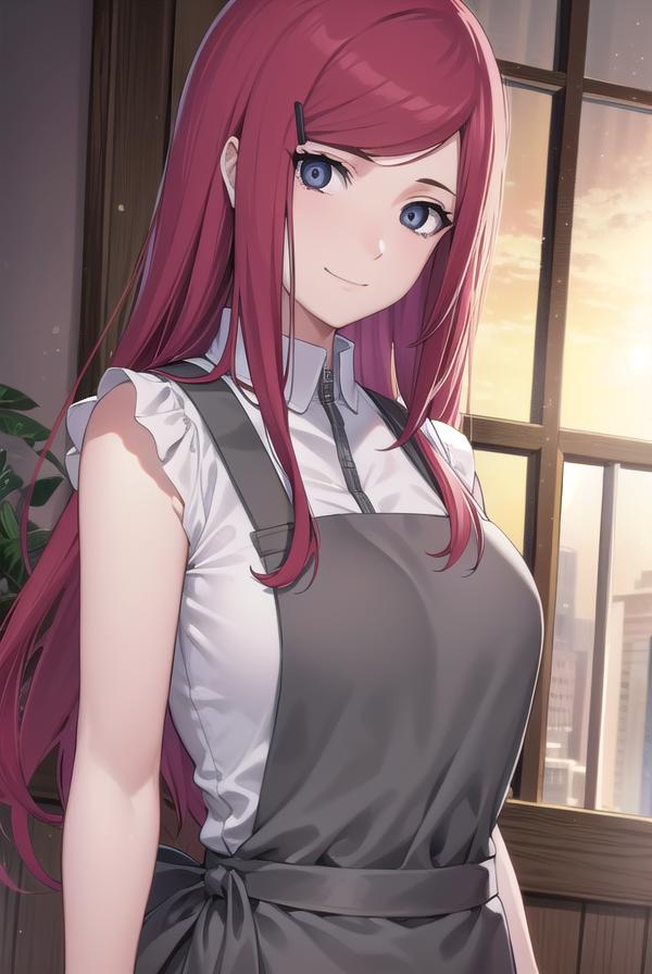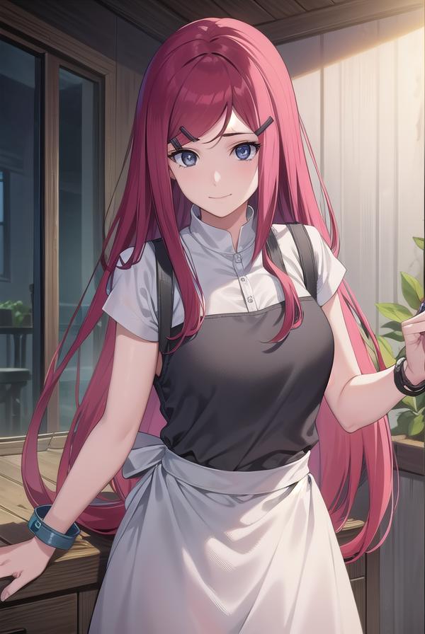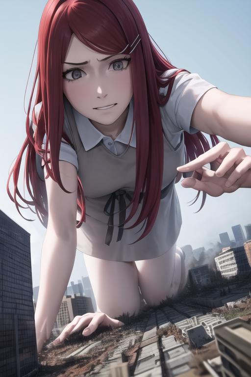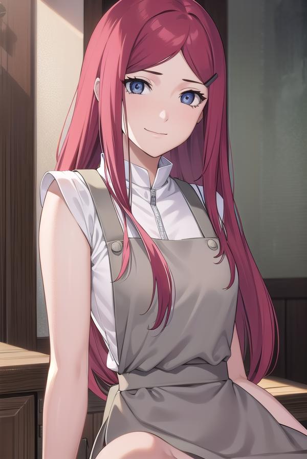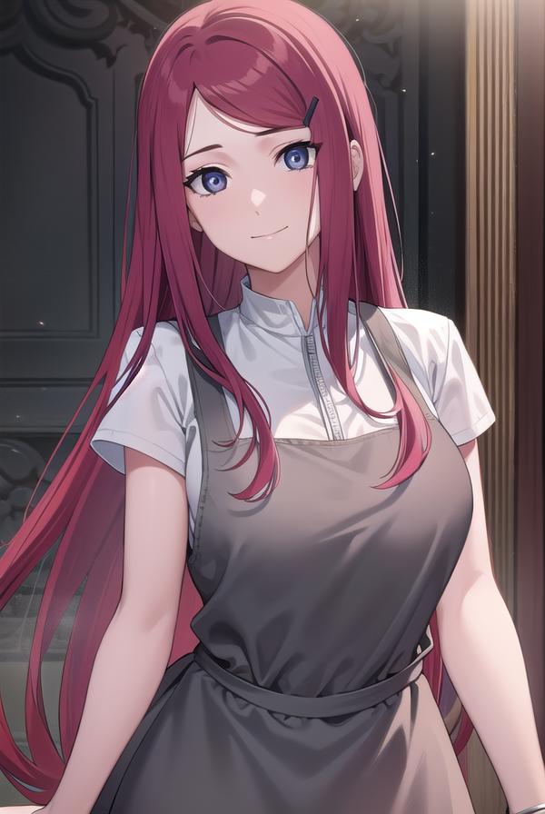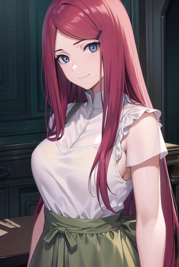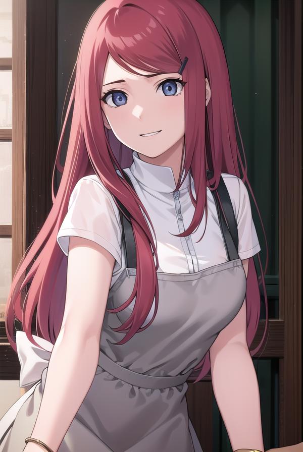 kushina, long hair, hair ornament, red hair, hairclip, (grey eyes:1.5),