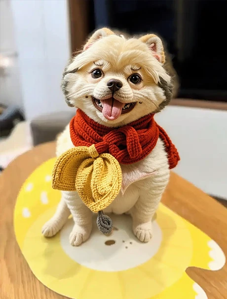 ✨ Bem-vindo ao "mundo tricotado" ✨👦👧👨👩aqui, você pode inserir qualquer imagem, como um animal de estimação da família, e ela irá gerar o animal peludo que você deseja! Vamos começar!