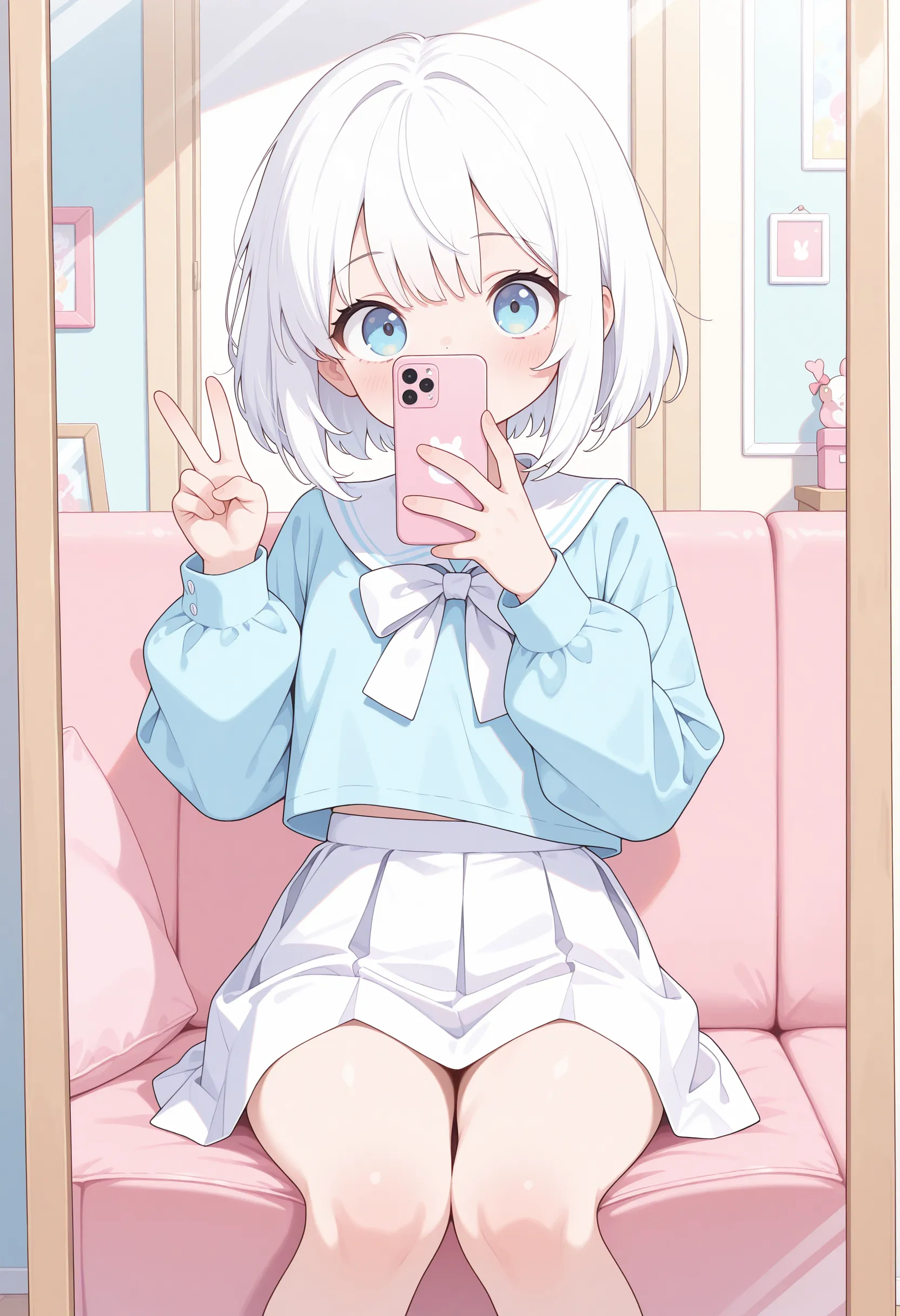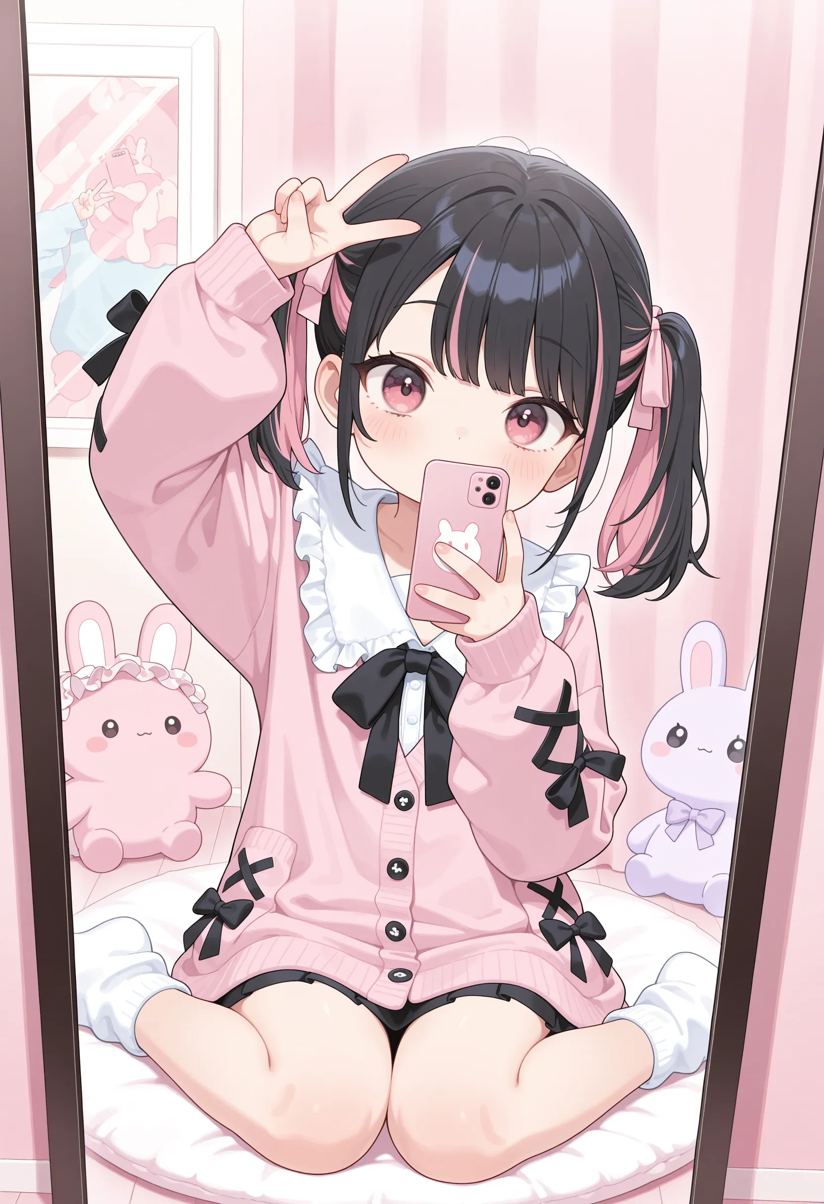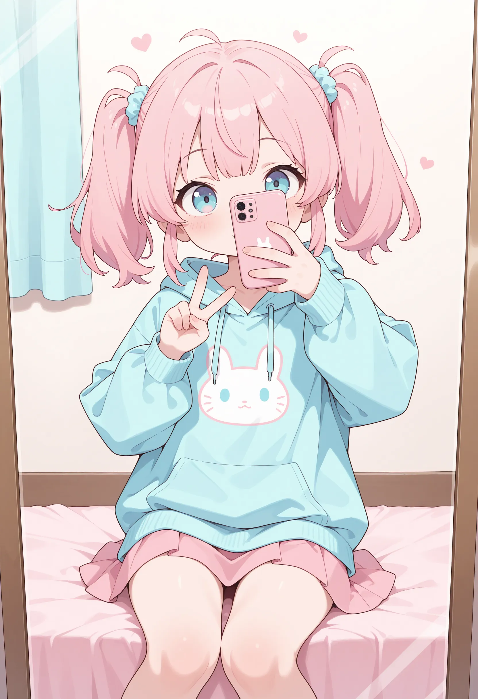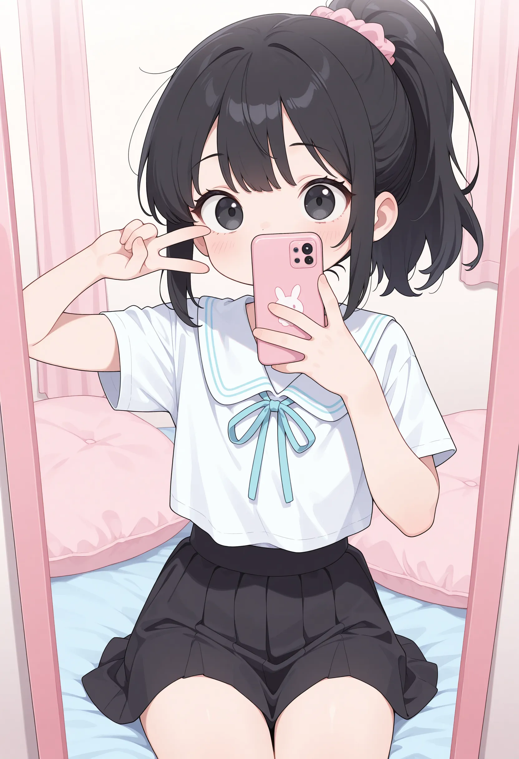 Gerar uma garota de anime tirando uma selfie com um prompt.