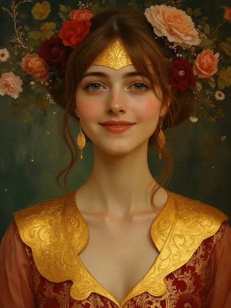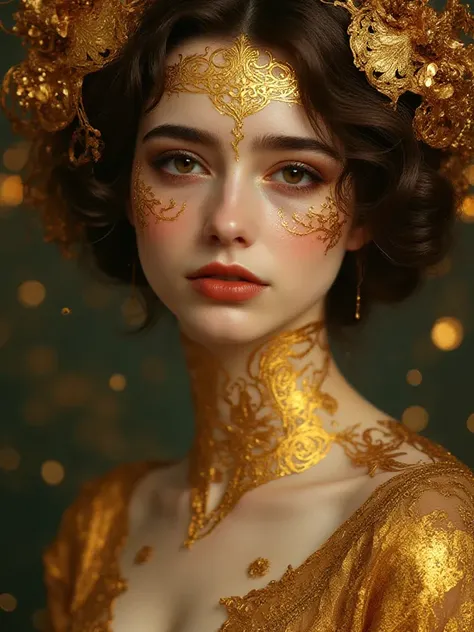 Filtro Gilded Muse — Exclusivamente para mulheres. Envolve retratos de meio corpo em padrões dourados semelhantes a Klimt que se movem naturalmente com você.