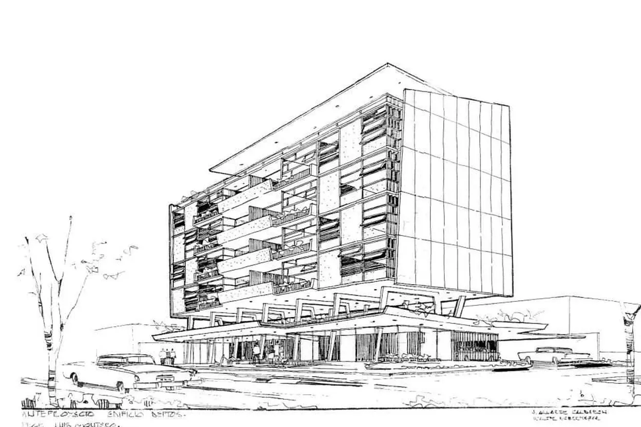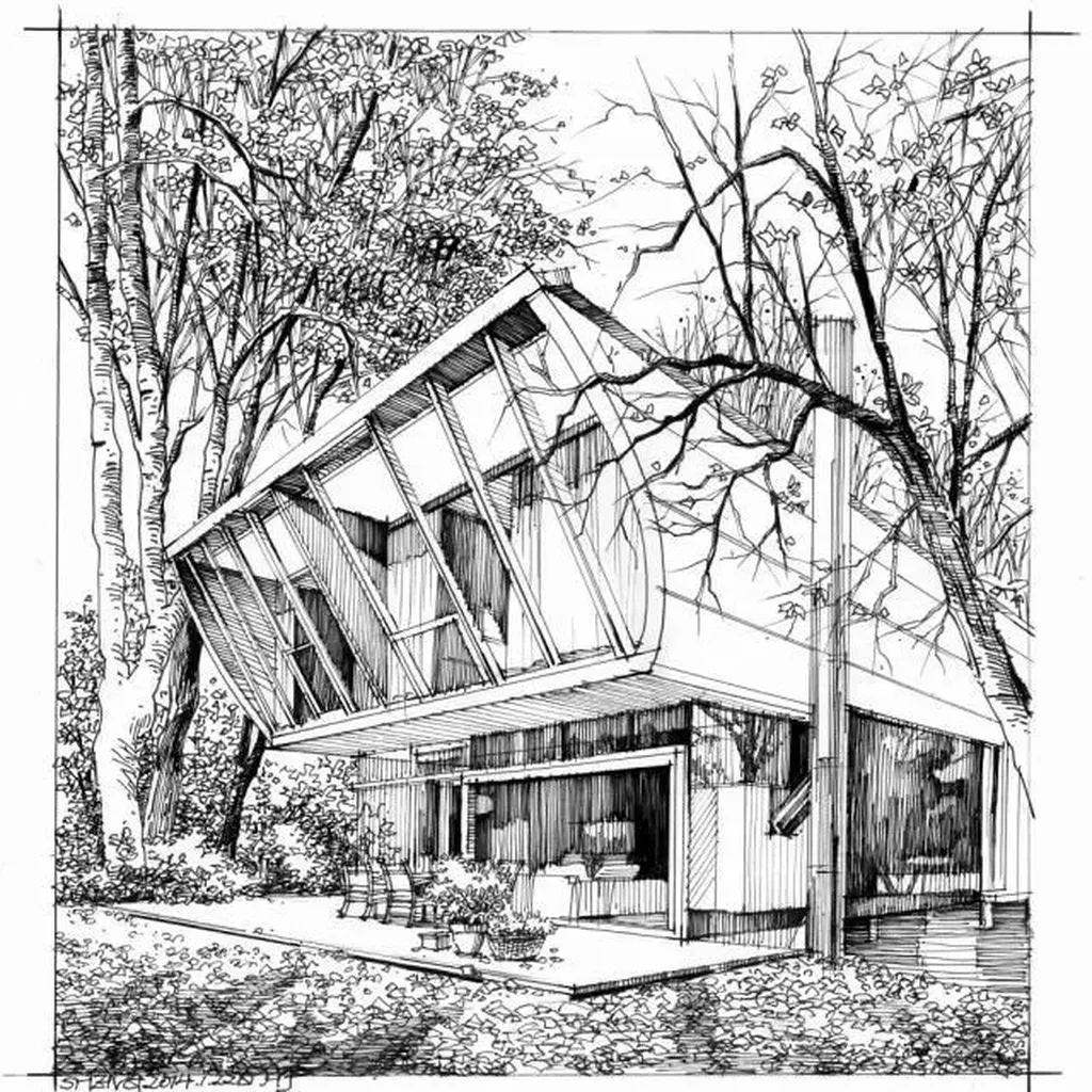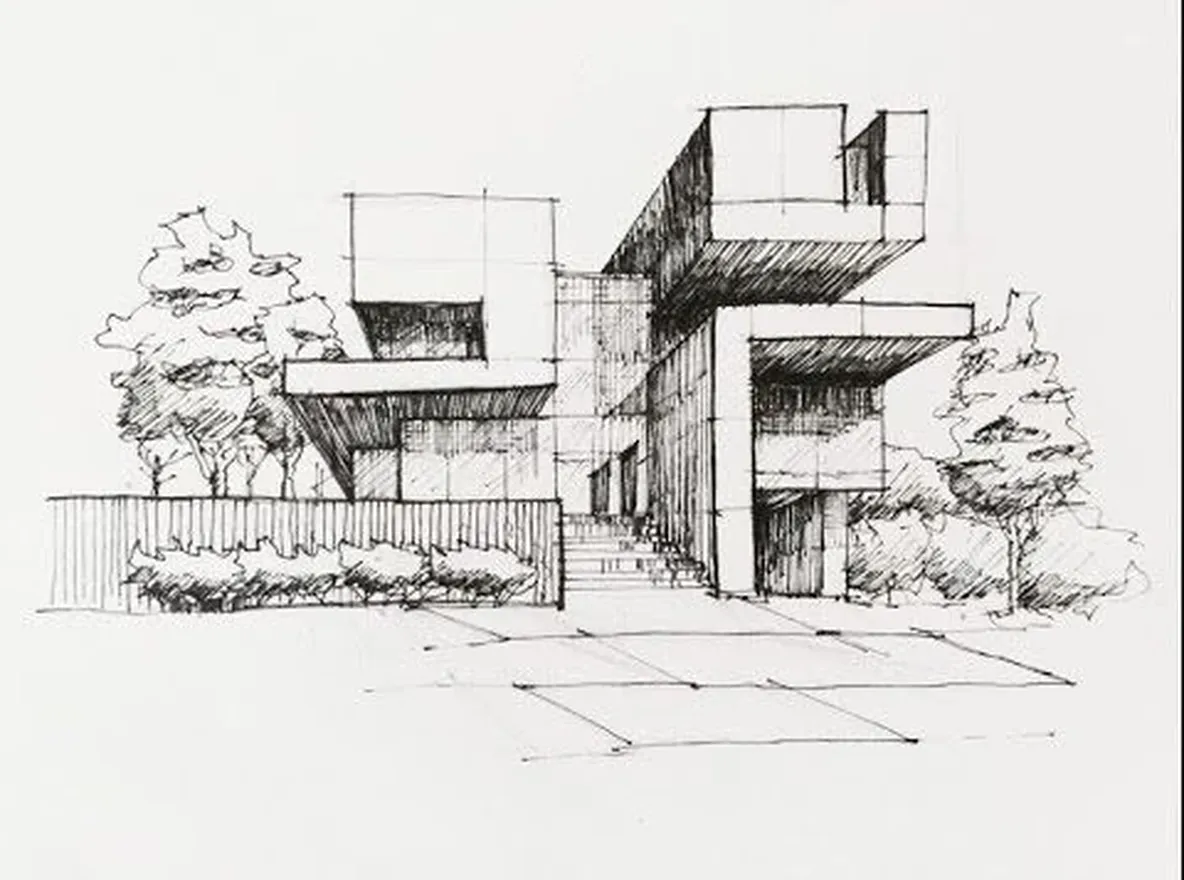 Generate a realistic architecture photo from a hand skETCh of different media such as canetacil, caneta, marcador, Aquarela.ETC