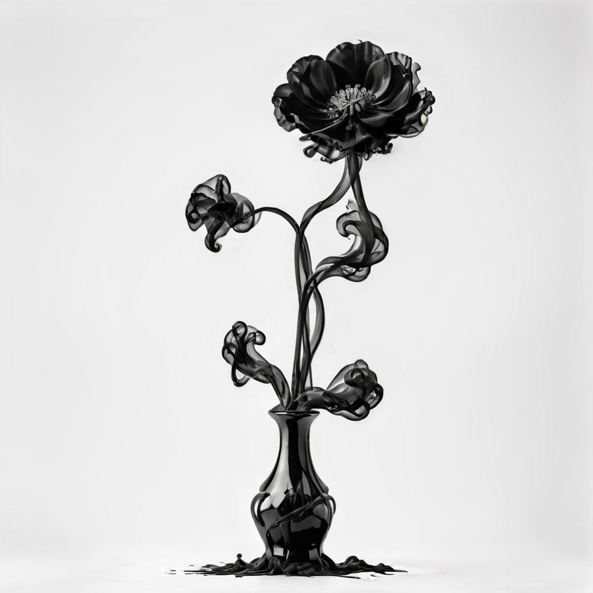A common simple prompt is "A photograph of a Flower in a vase in a white room, best quality, greyscale, monochrome"