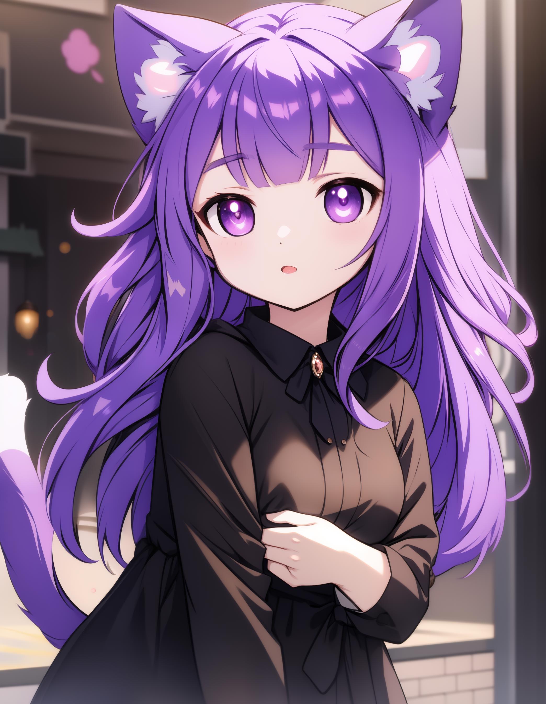 Masyunya, catwoman, purple hair, purple eyes, purple cat ears