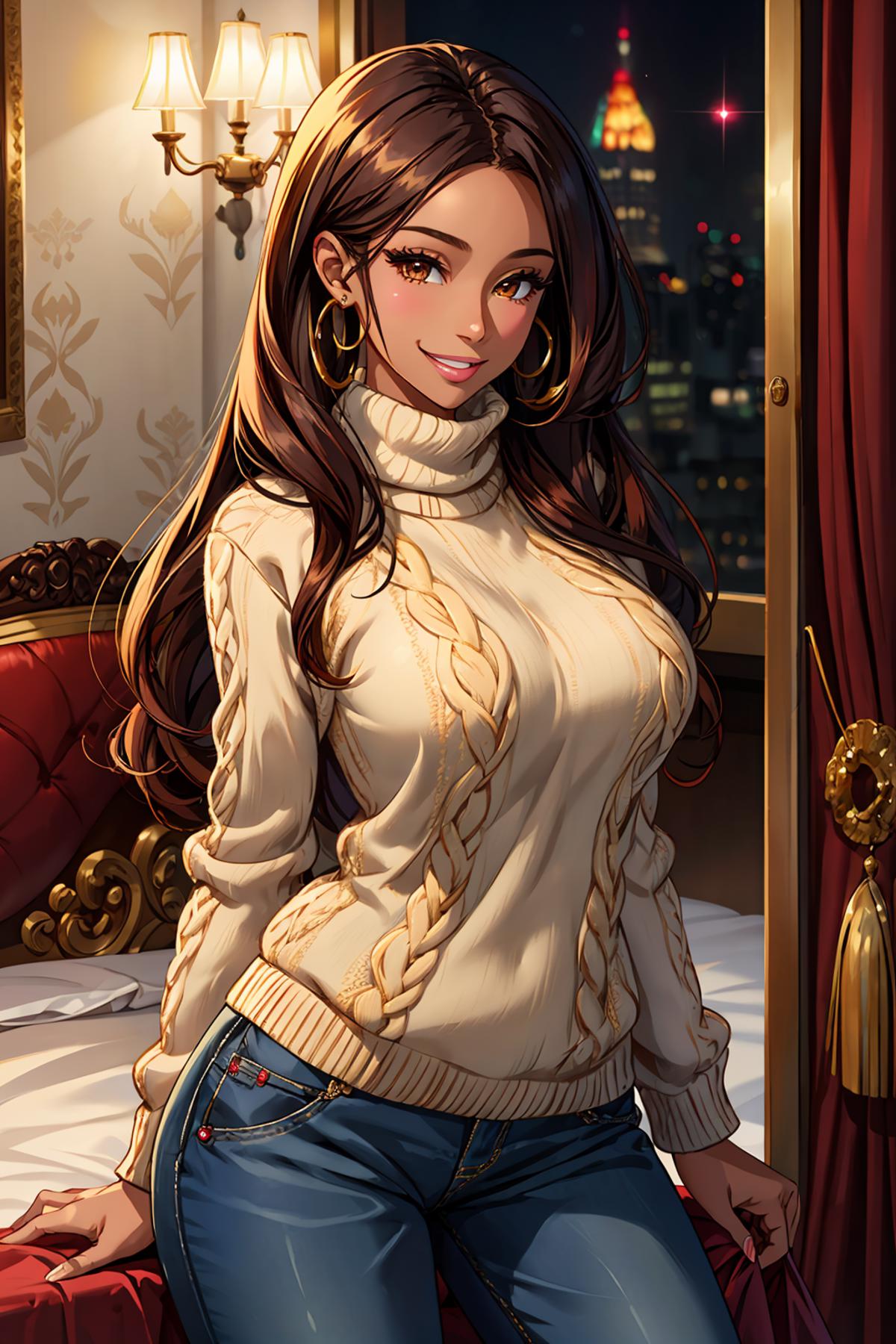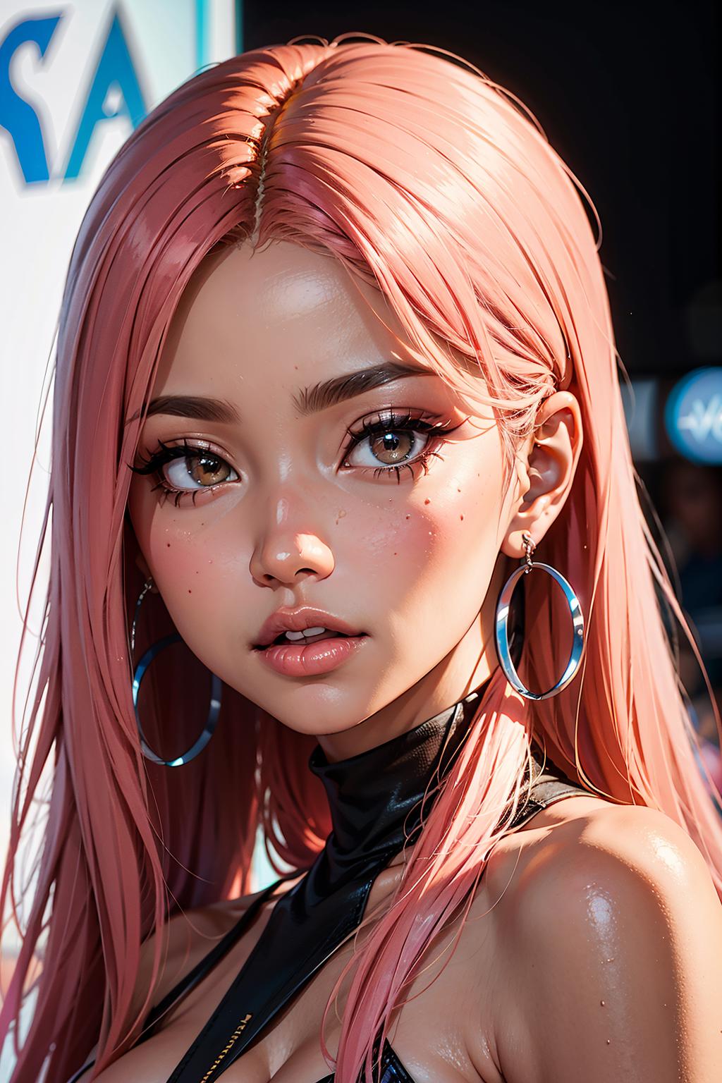 The pictures only of her face are a workaround for Civitai TOS. The pictures you get from the LoRa can totally be full body and are usually much closer to what she usually wears.