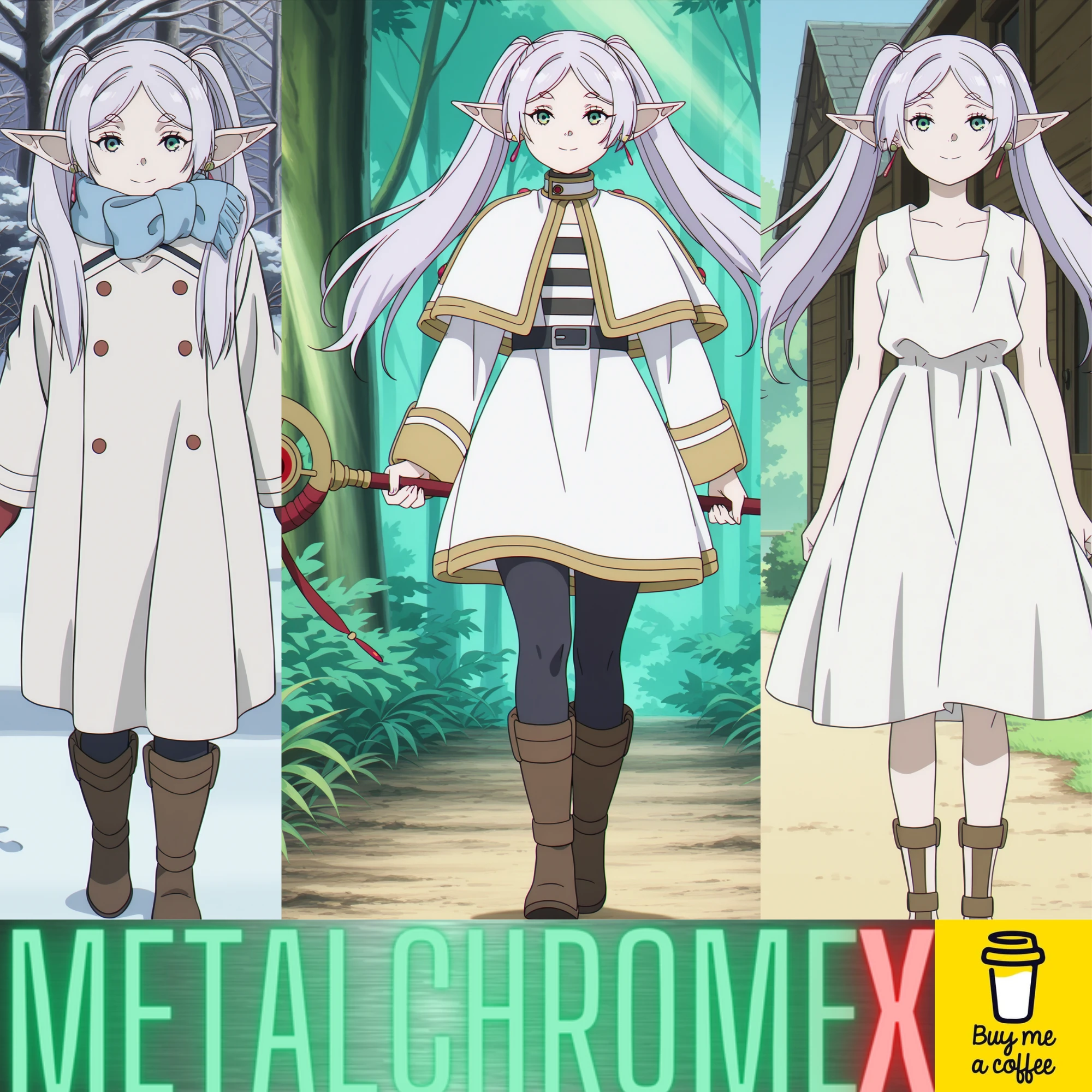 Frieren is my favorite anime character of the 2020s, so here is my take on her! It should be able to do all the main outfits from Season 1 quite well (there are three main ones). Obligatory self-promotion: consider supporting or commissioning me at https://www.patreon.com/MetalChromeX or http://www.fiverr.com/s/VY34o4m so I can afford an Nvidia 5090 when it releases!