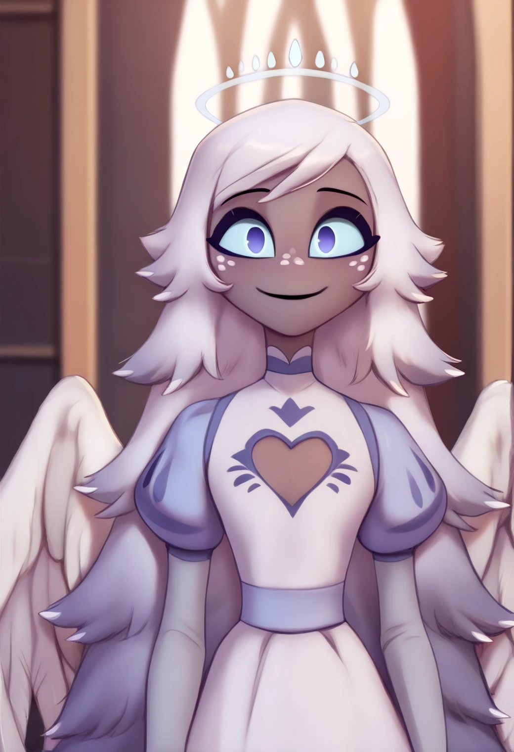 emily, halo, angel wings, white dress, fingerless gloves, very long gloves