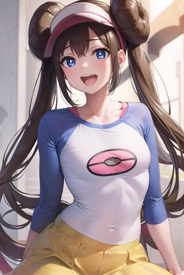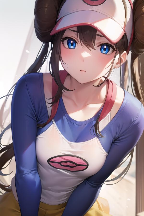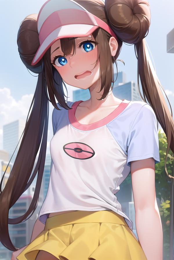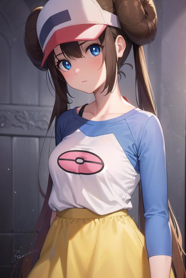 rosa, brown hair, double bun, doughnut hair bun, hair bun, blue eyes, hair between eyes, twintails,