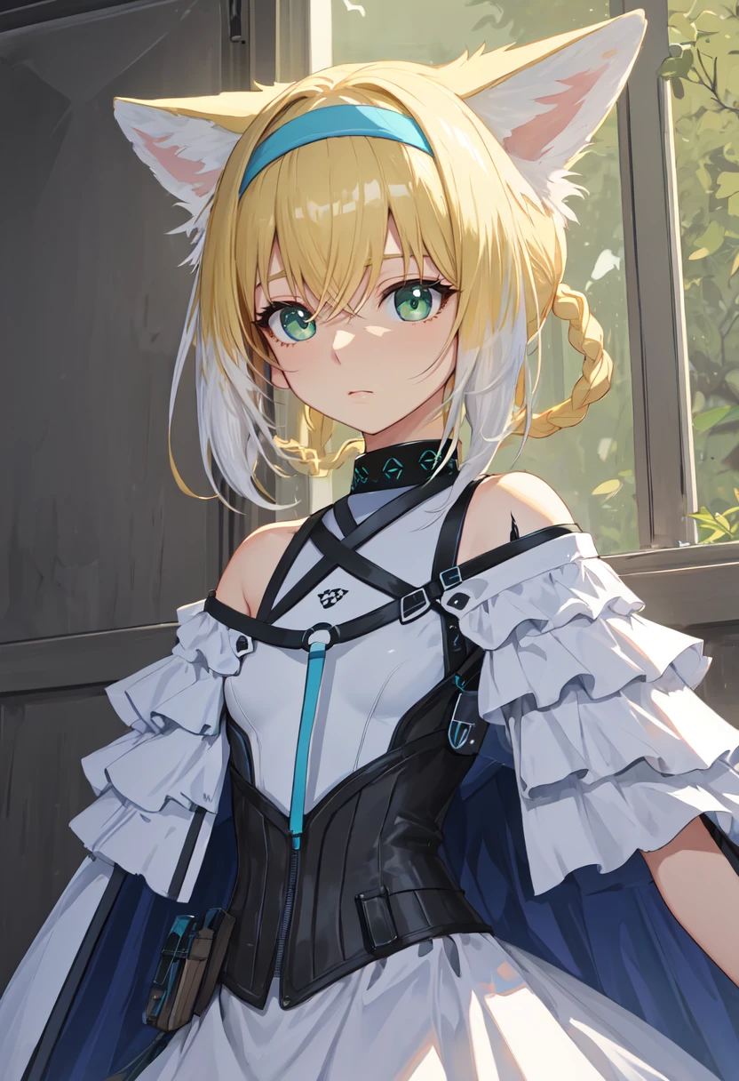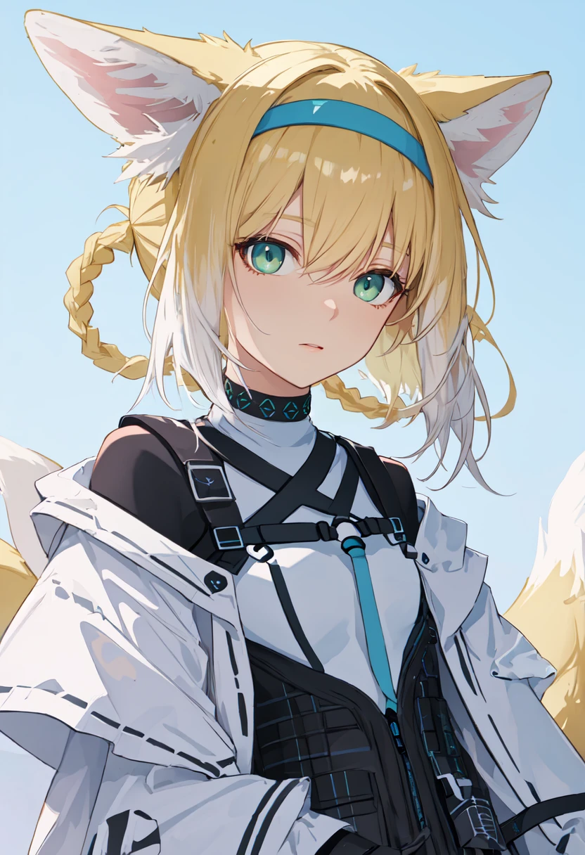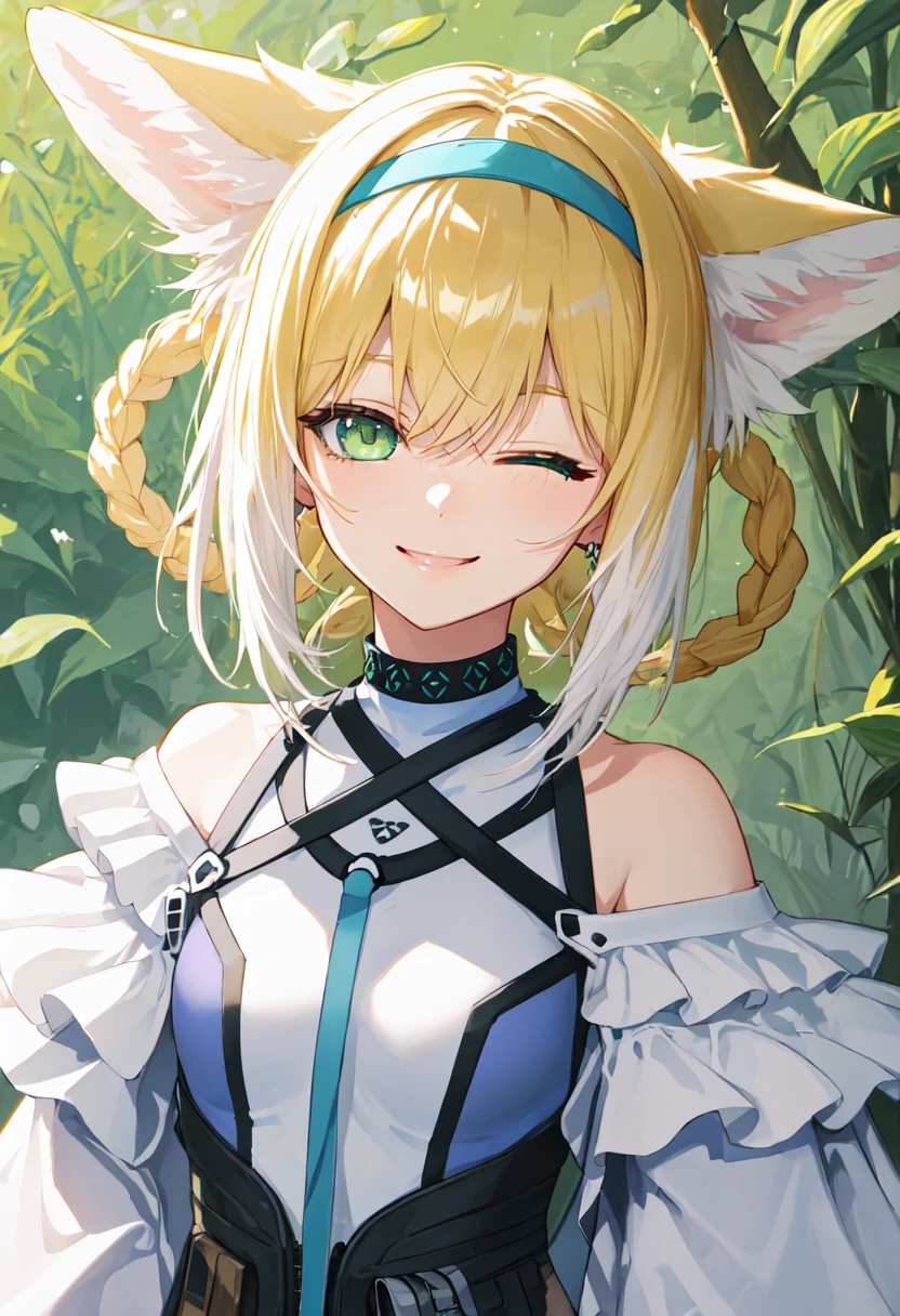 The trigger word is suzuran_arknights, and the pruned tags are animal_ears, fox_ears, blonde_hair, fox_girl, animal_ear_fluff, hairband, fox_tail, tail, green_eyes, multiple_tails, blue_hairband, multicolored_hair, white_hair, braid, hair_rings, braided_hair_rings, two-tone_hair, twin_braids.