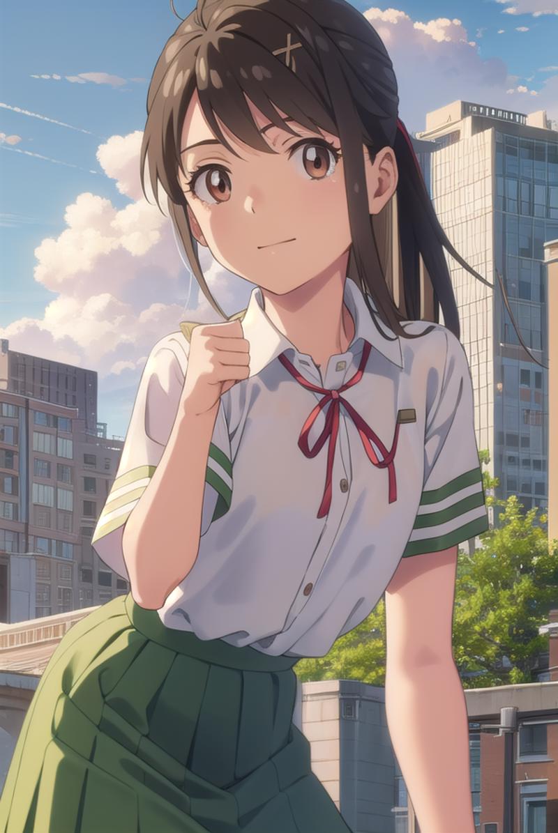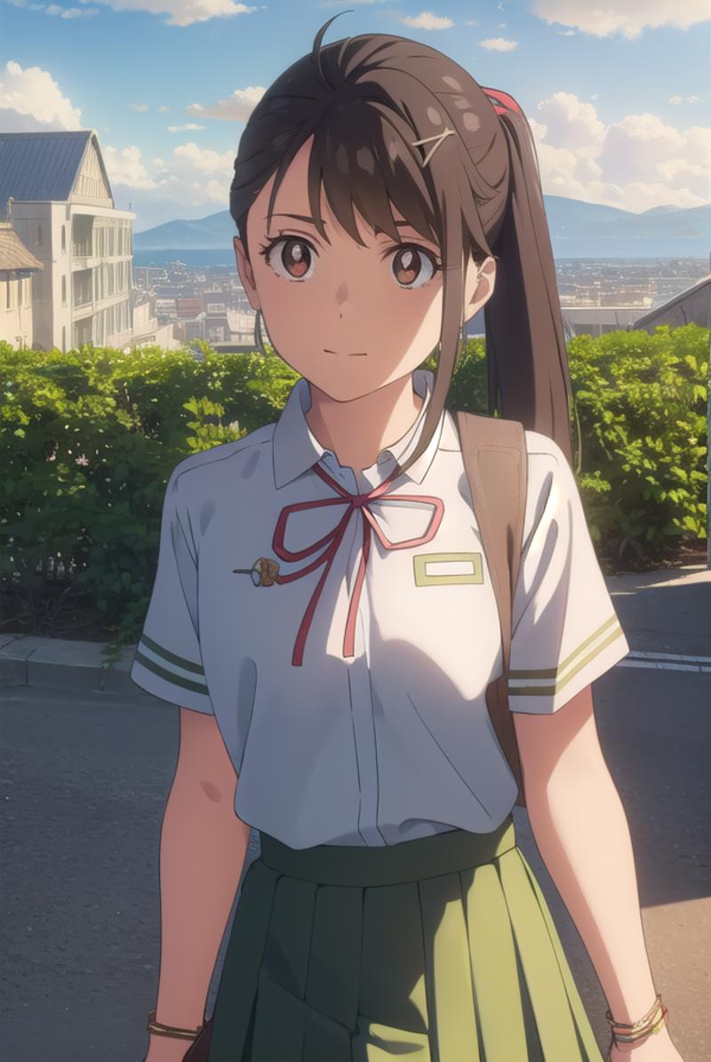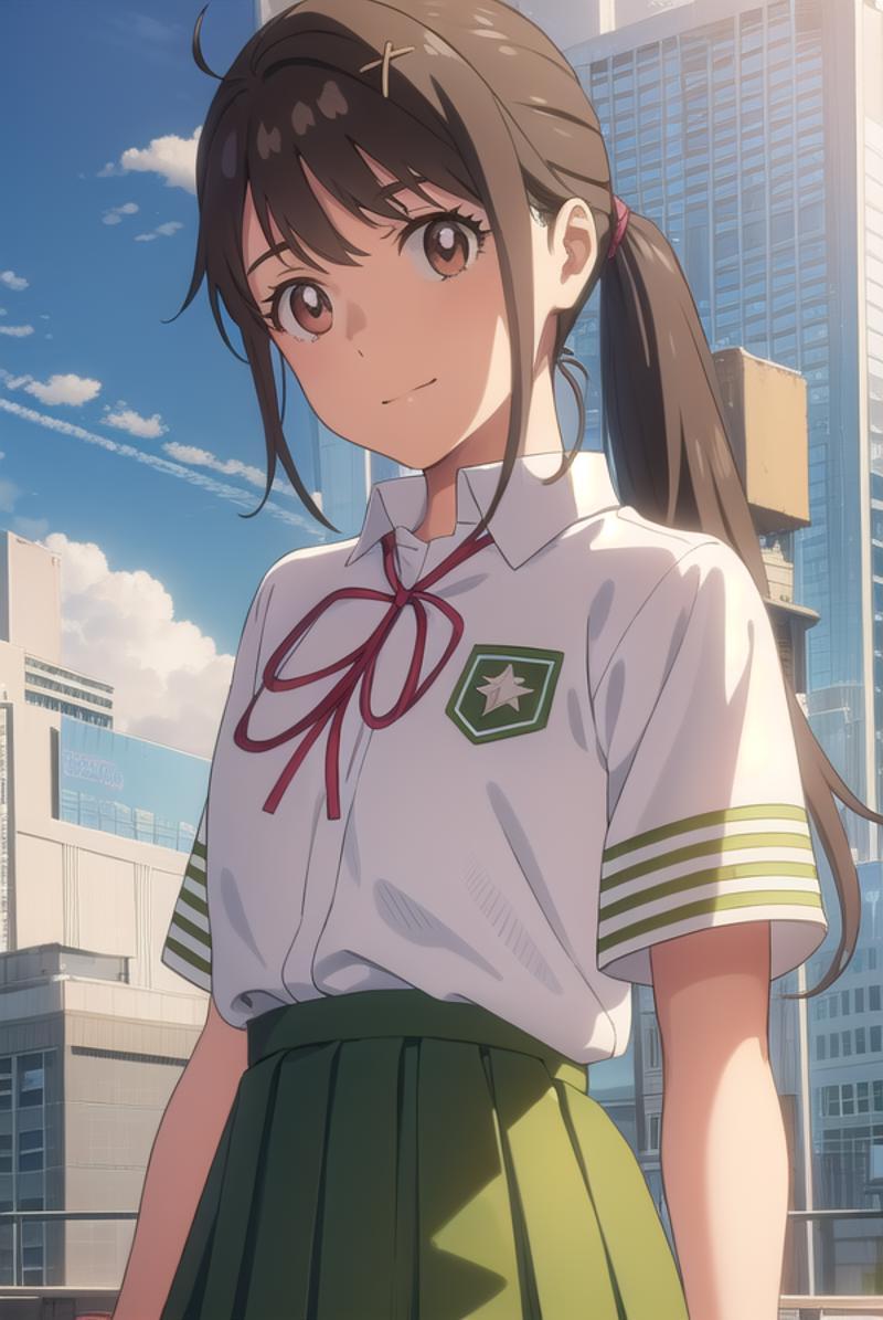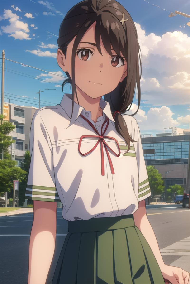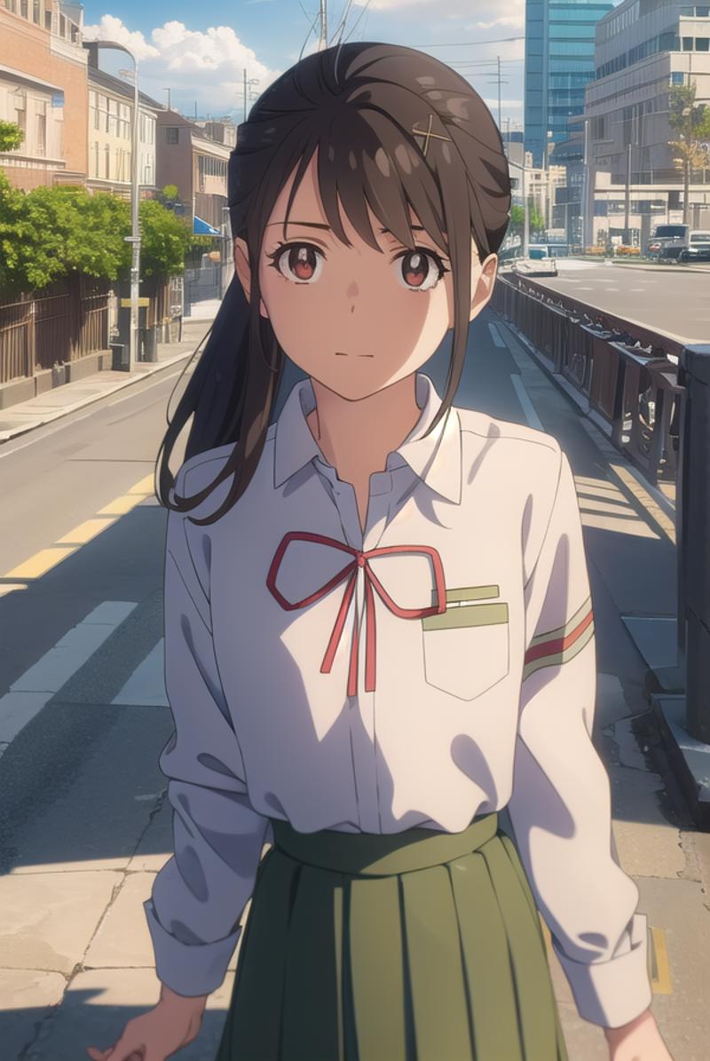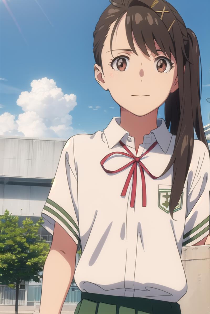 suzume iwato, long hair, black hair, hair ornament, (brown eyes:1.5), hairclip, ponytail,