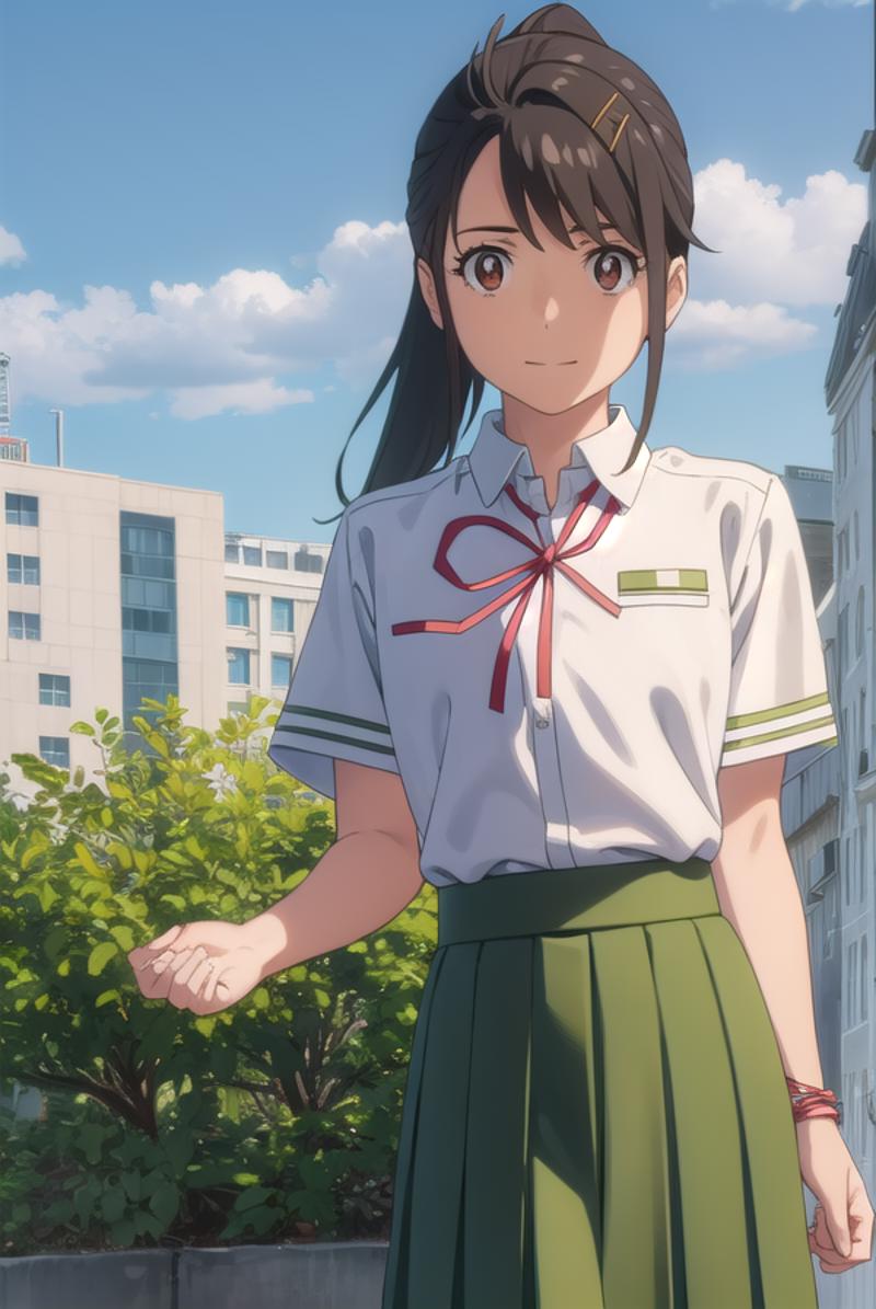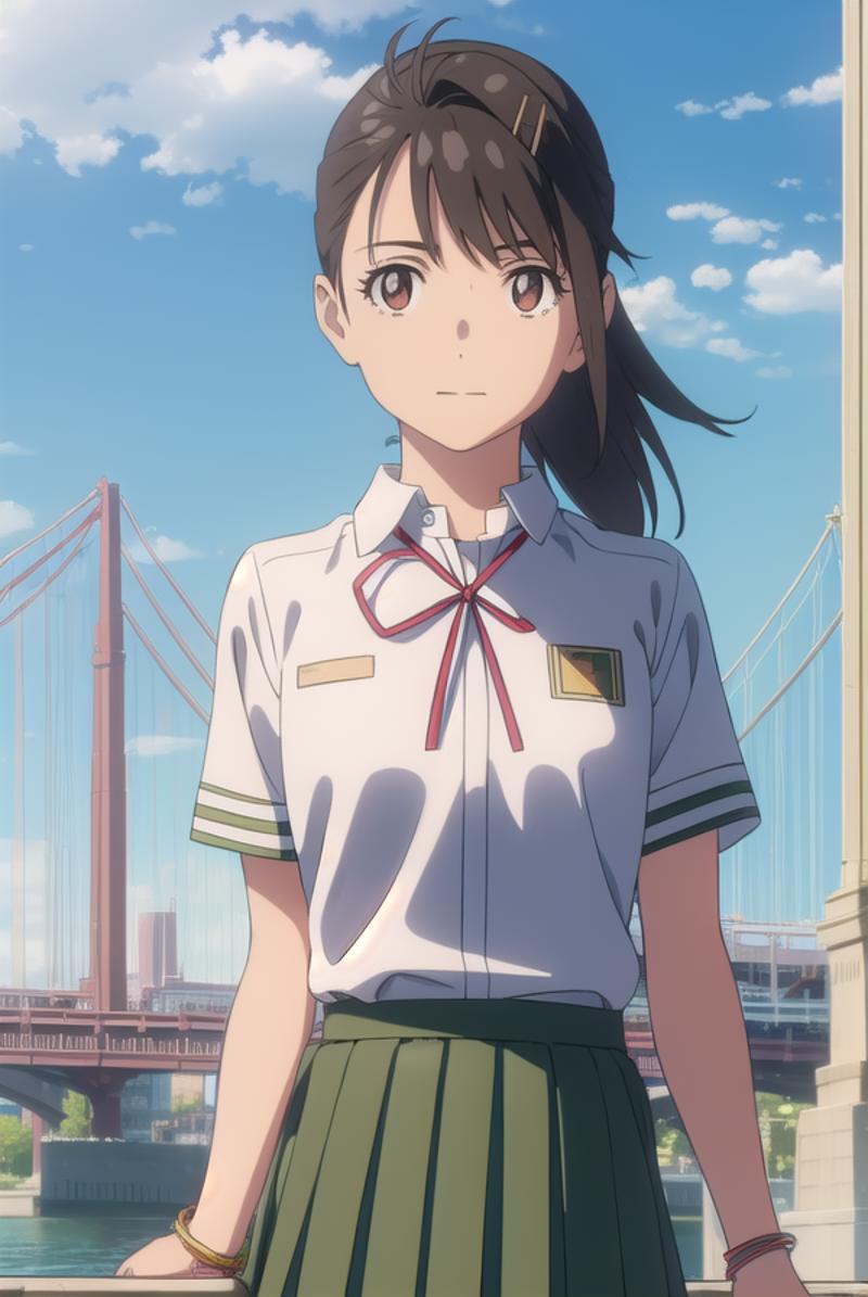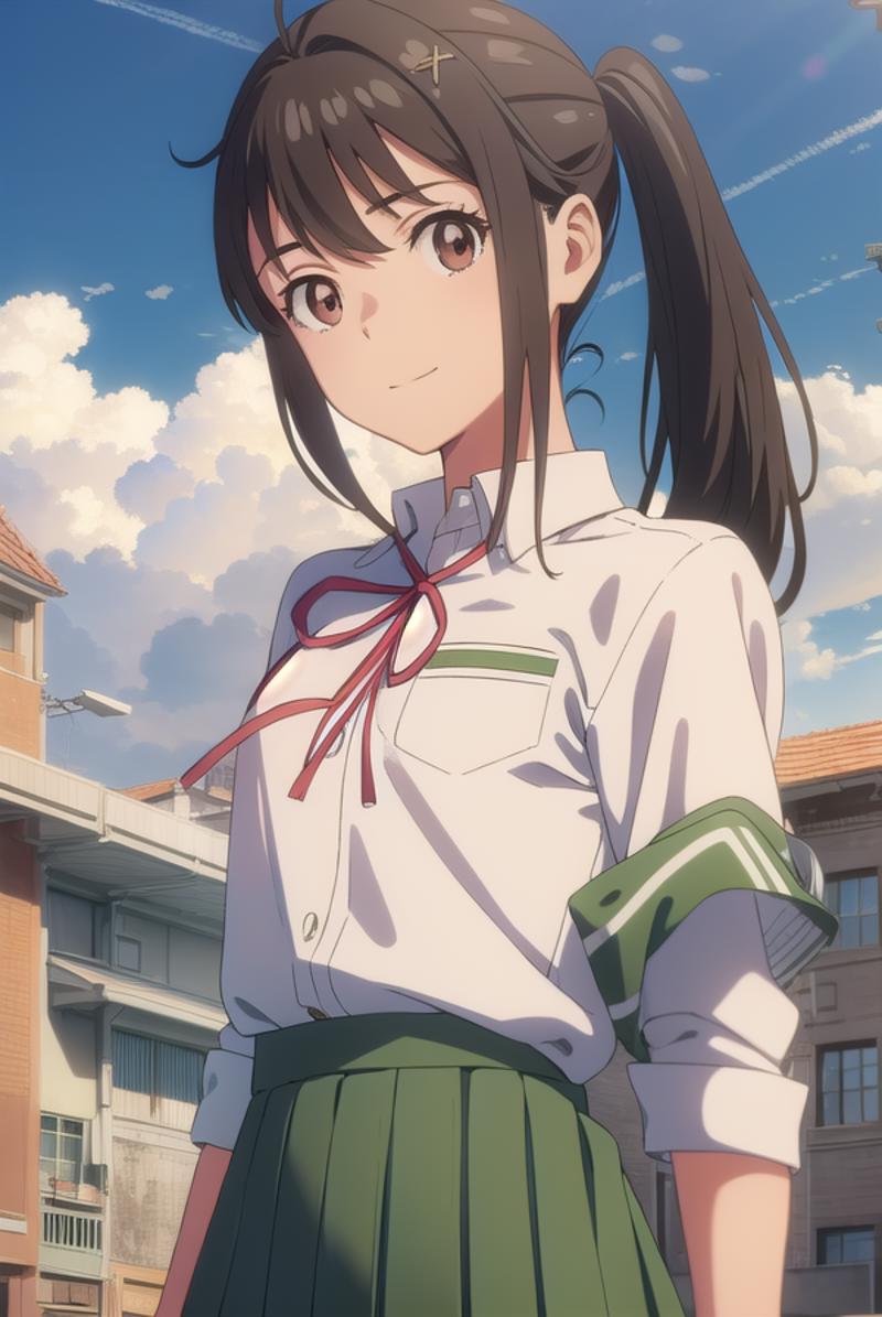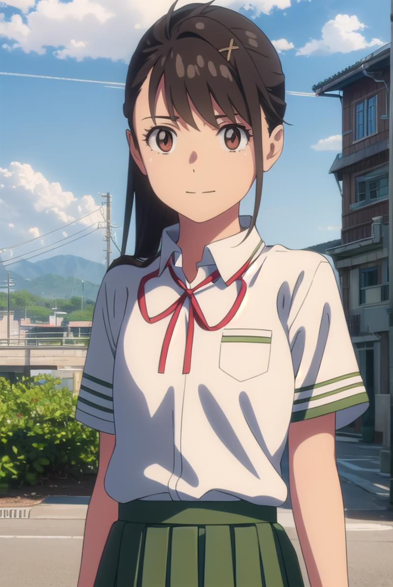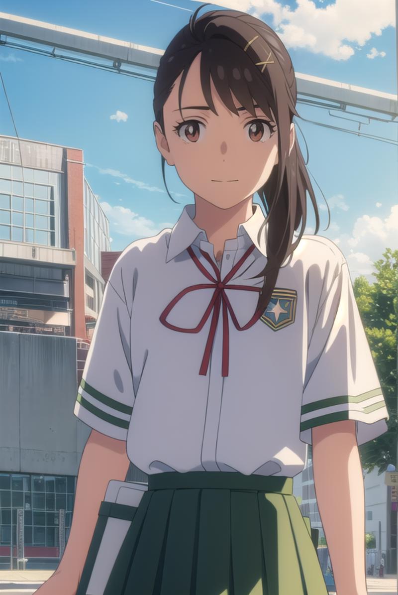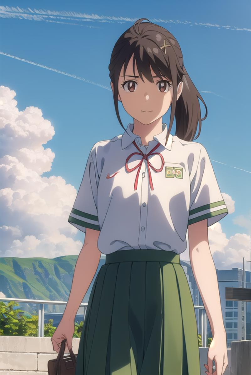 suzume iwato, long hair, black hair, hair ornament, (brown eyes:1.5), hairclip, ponytail,